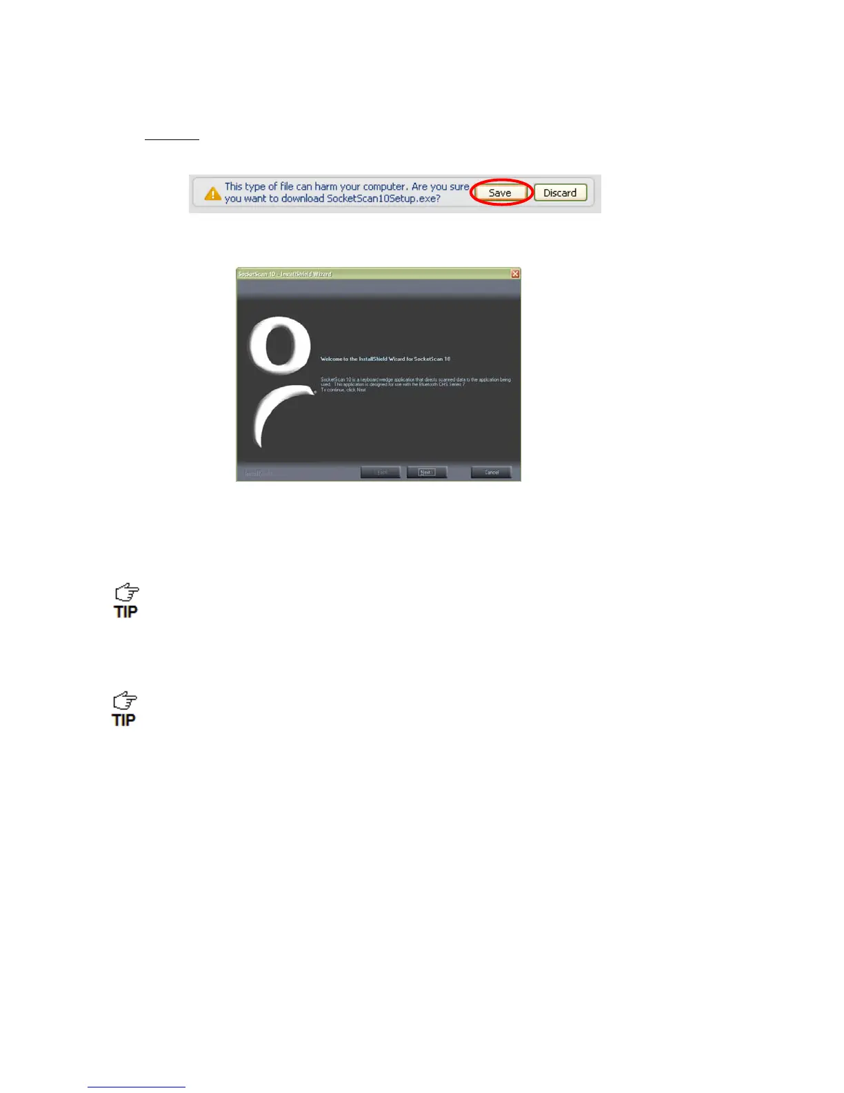 SocketScan10Setup.exe. In the Security Warning screen, click Run.
