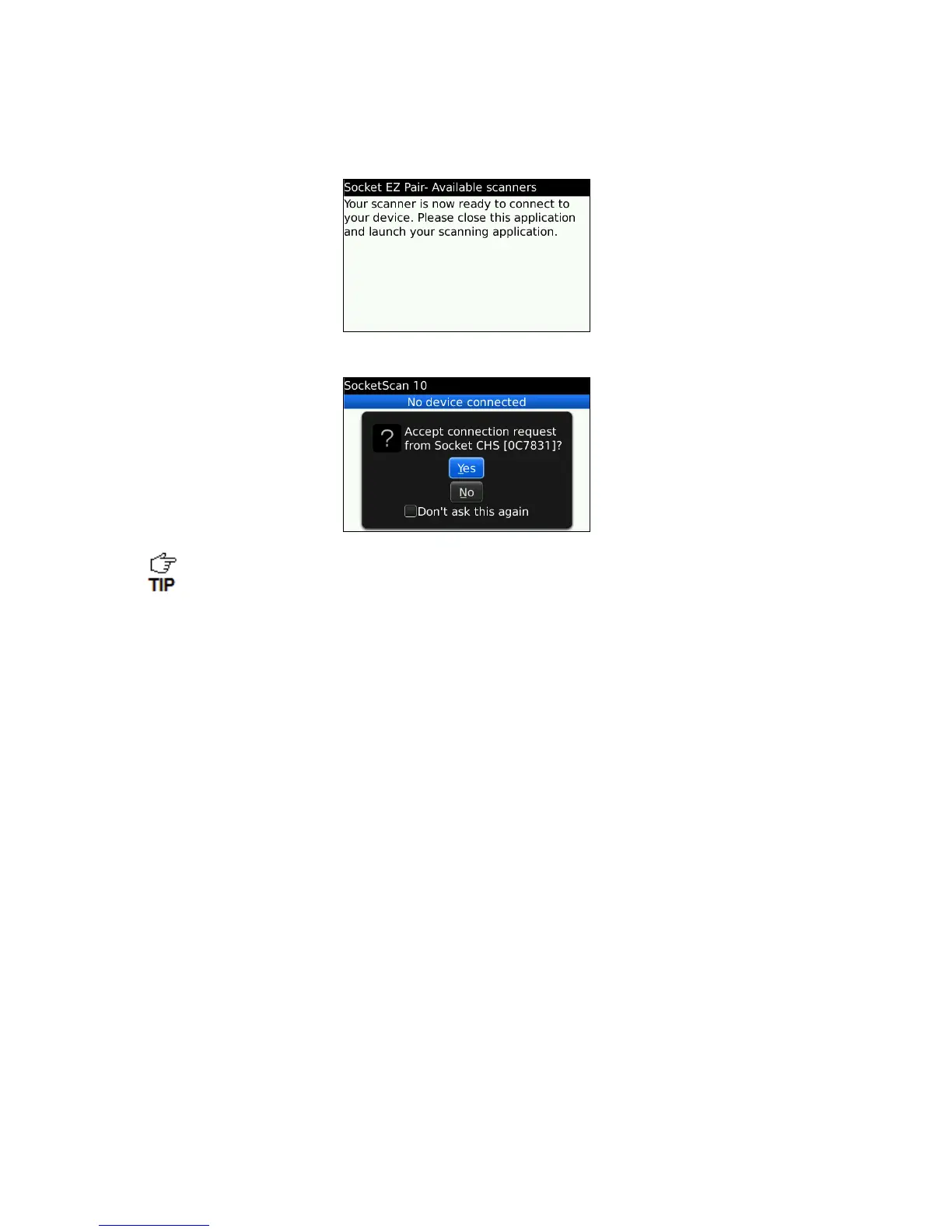 14. SocketScan 10 will try to connect to the CHS. If asked to confirm, click Yes.