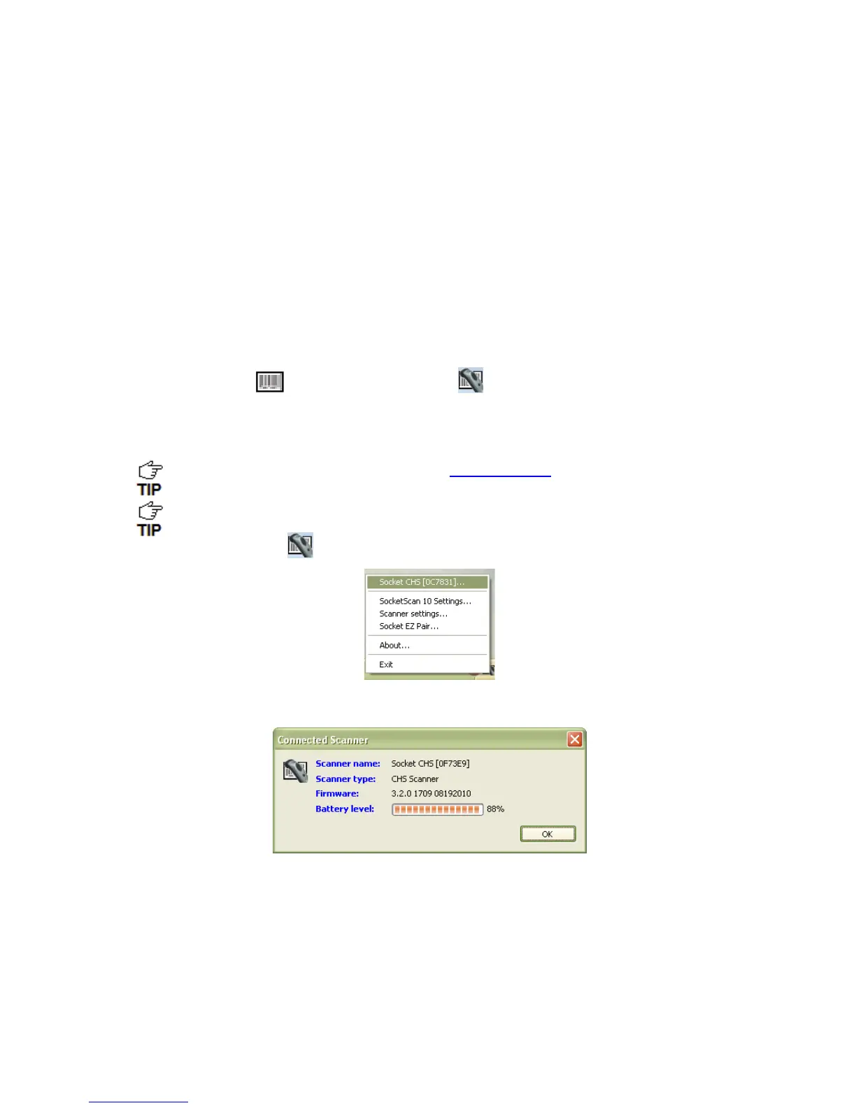 When SocketScan 10 is running, an icon that indicates the CHS connection status will appear in