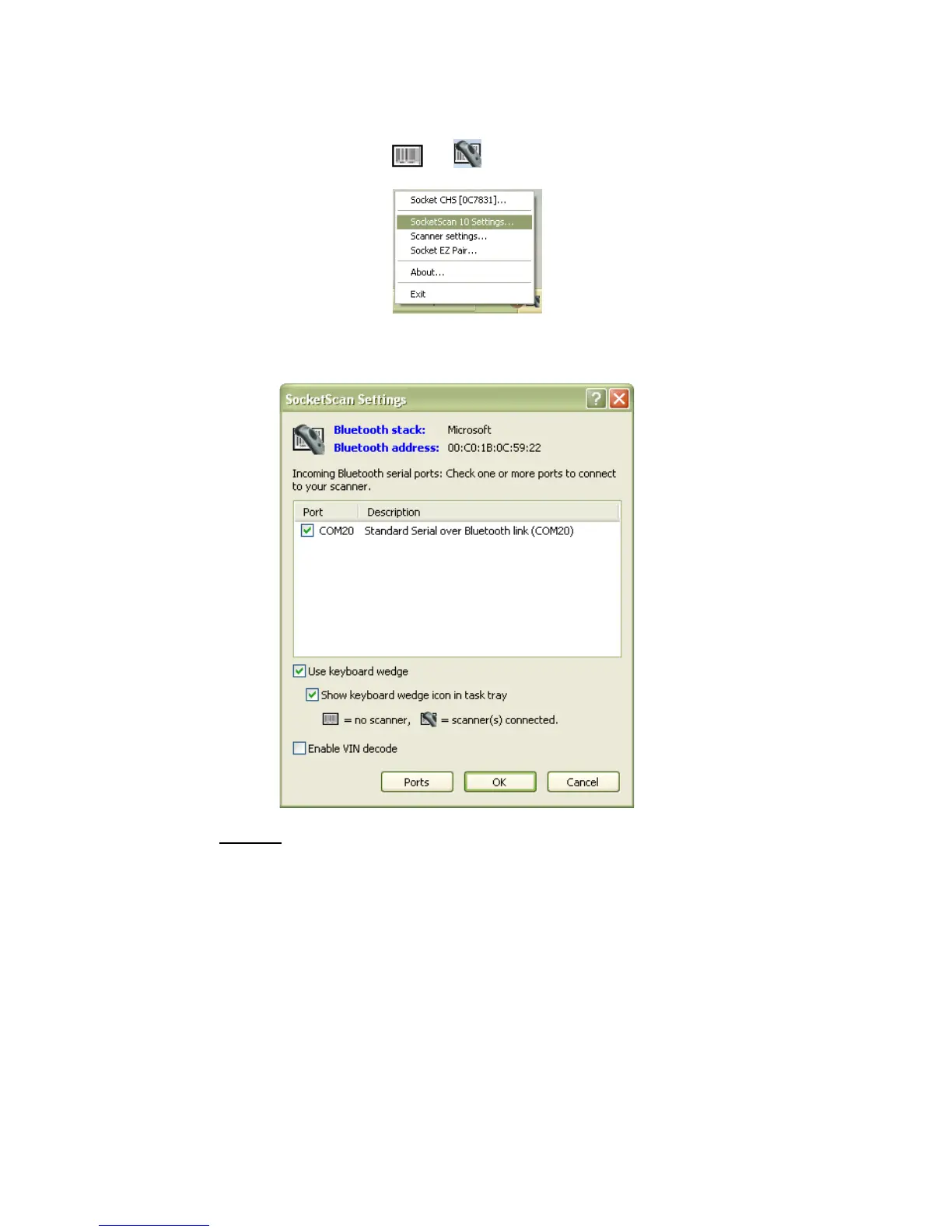 o If a suitable port is not listed in SocketScan 10 Settings, click Ports to use your