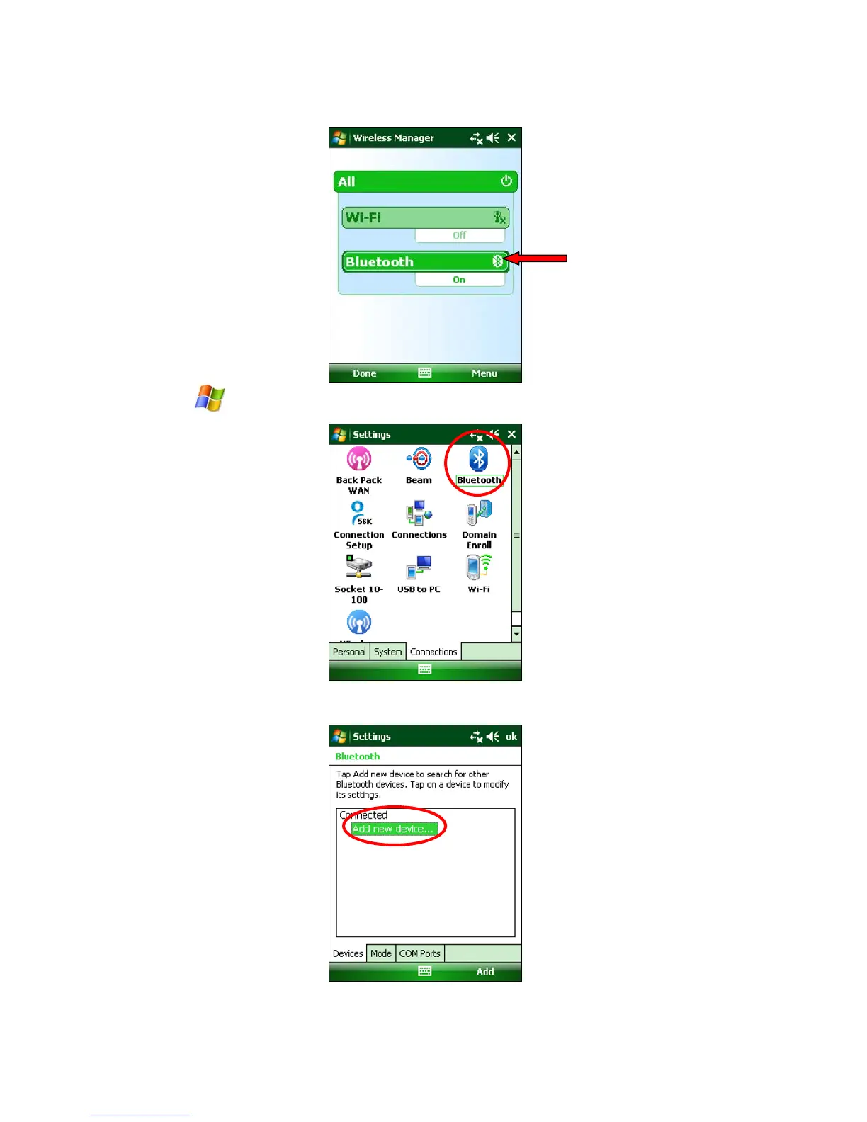 6. In the Bluetooth utility, tap Add new device… Alternatively, tap Add at the bottom of the