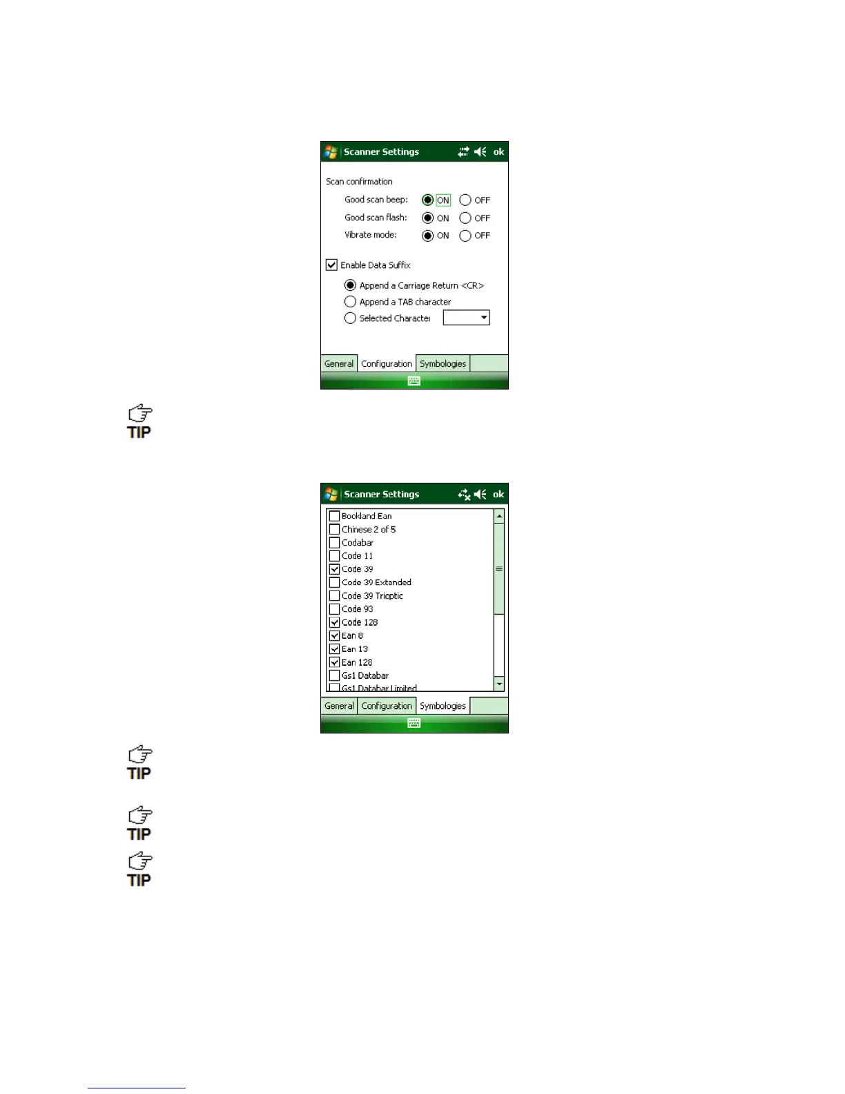 7. Tap ok to exit the Scanner Settings.
