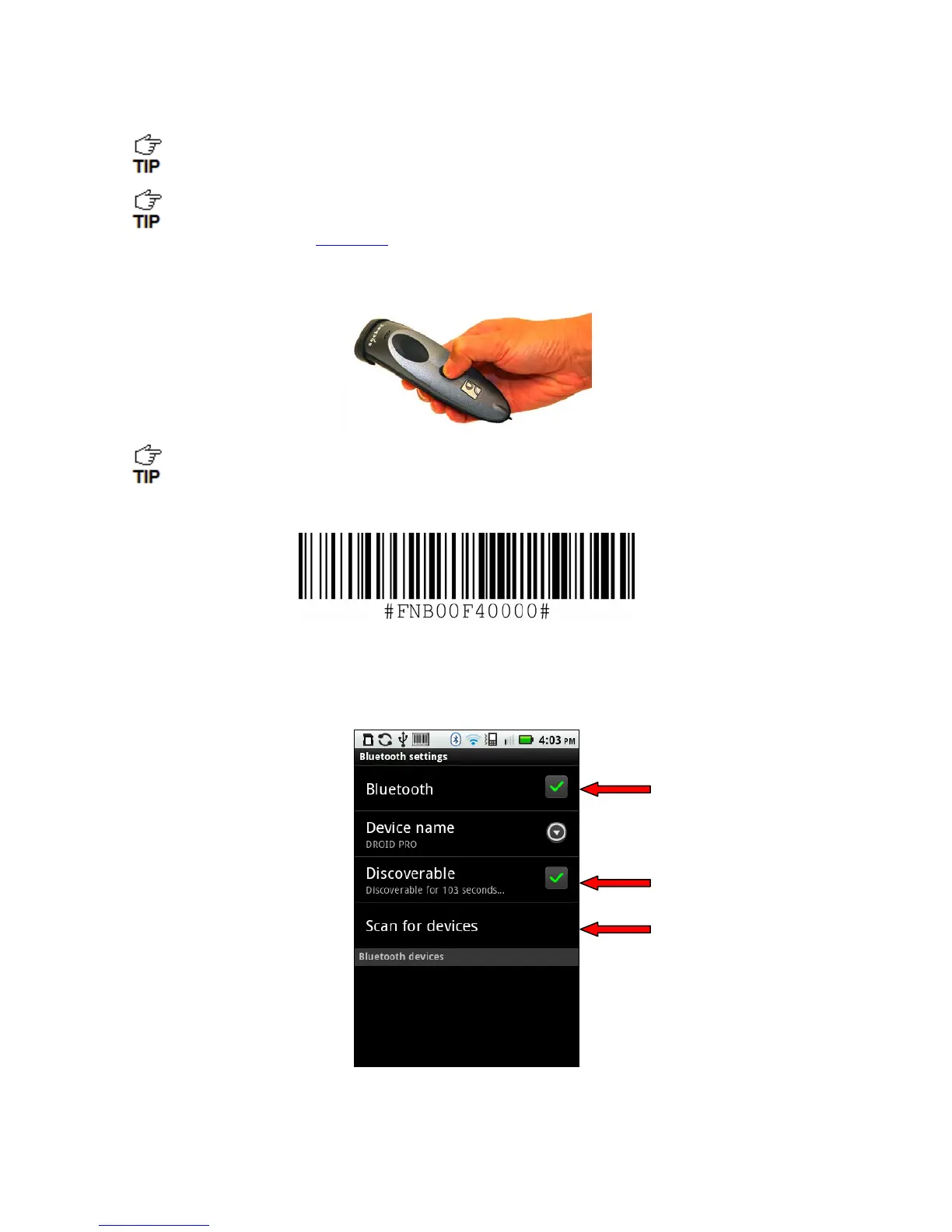 3. Make sure the device has Bluetooth on and is in Discoverable mode. Start a device search /