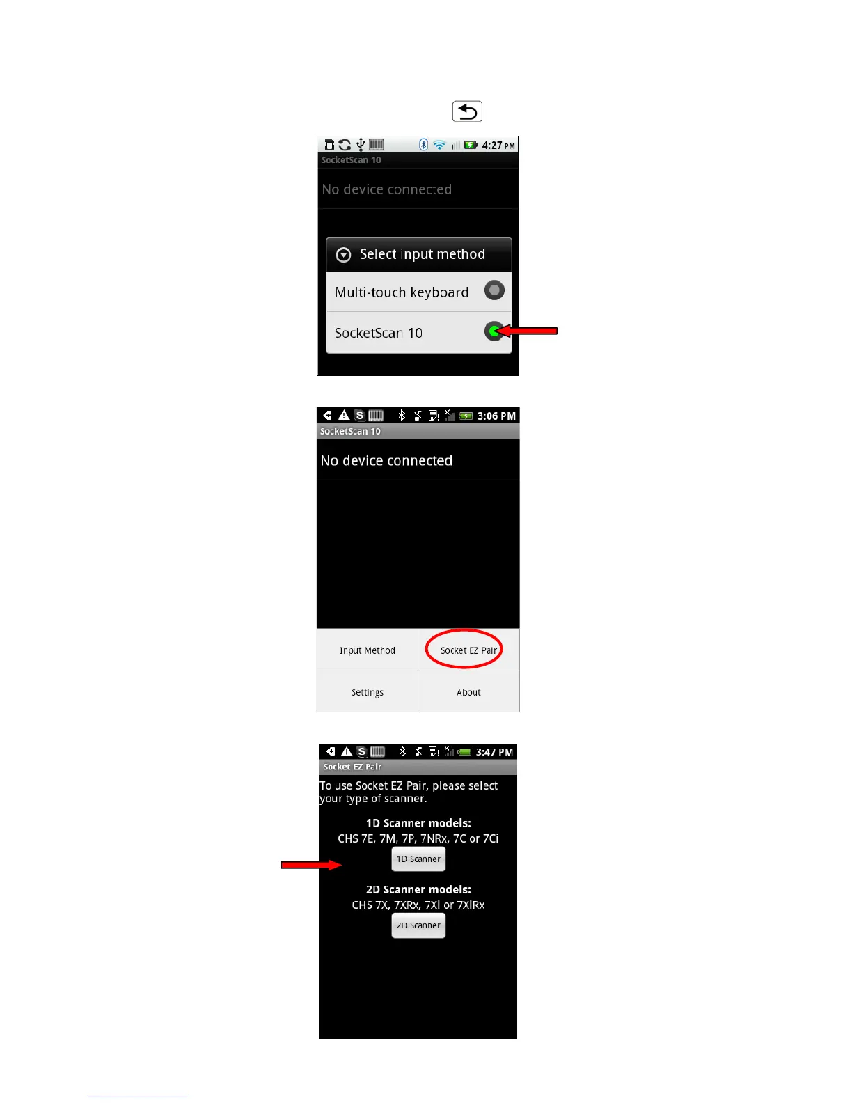 10. Make sure SocketScan 10 is selected. Touch Back