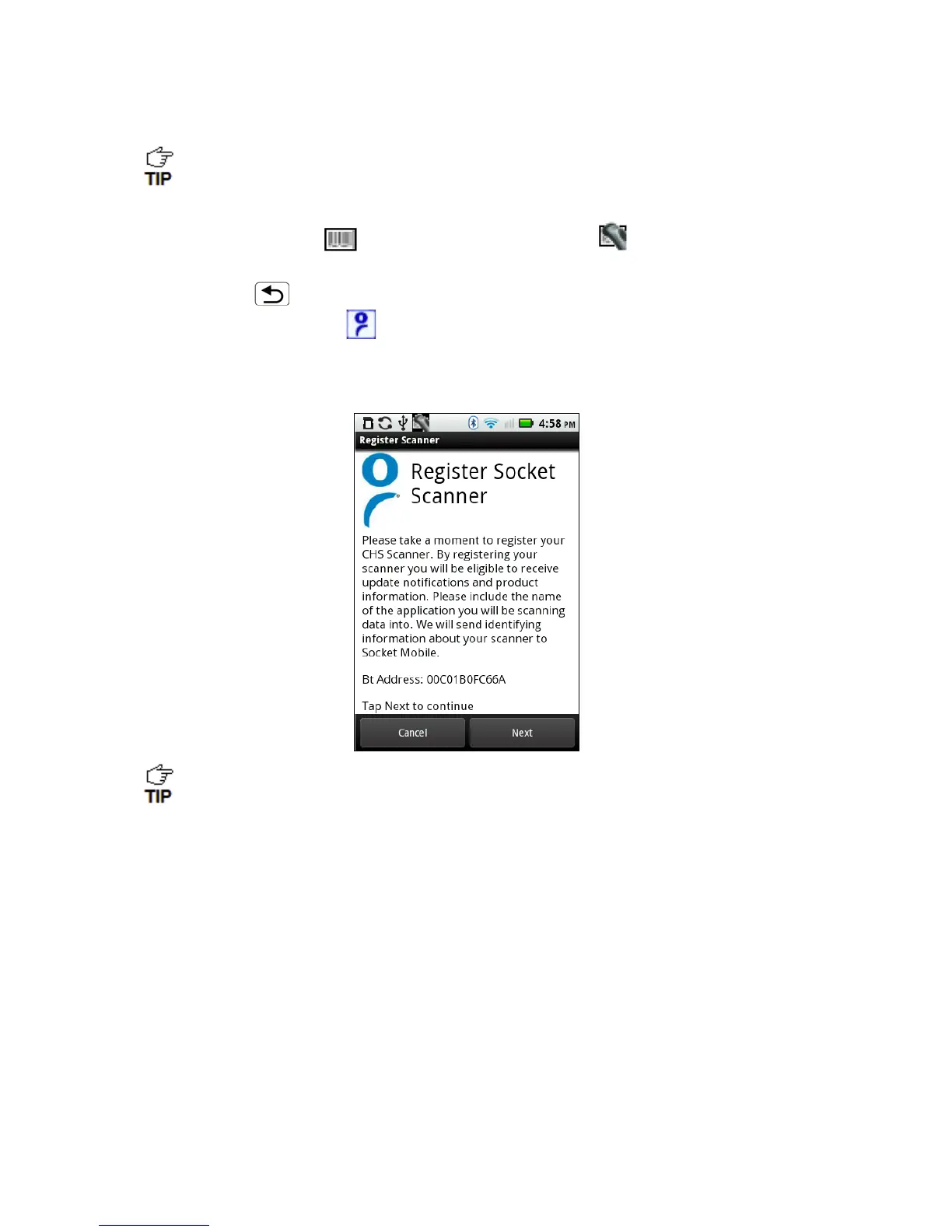 16. Follow the instructions to register the scanner or touch Cancel to register later.