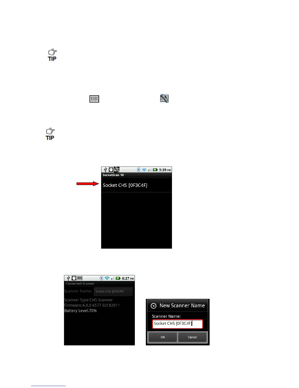When SocketScan 10 is running, an icon that indicates the CHS connection status will appear at