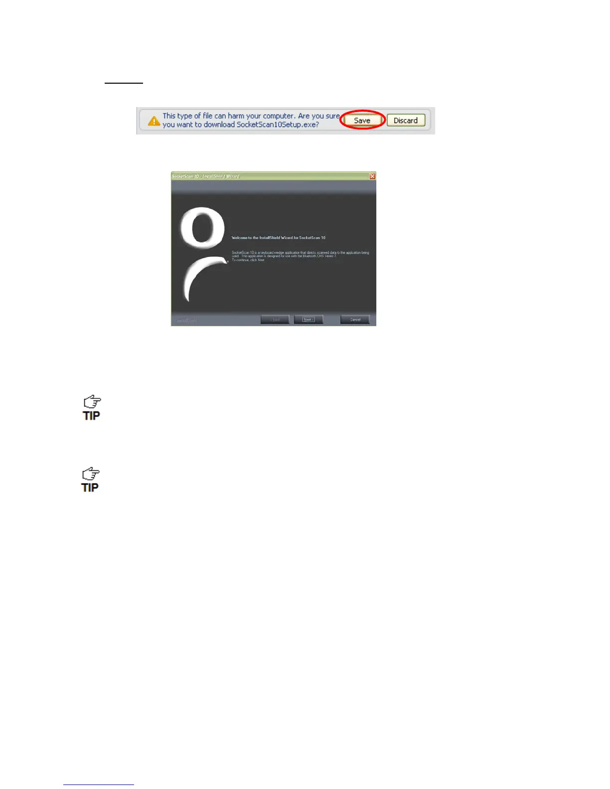 SocketScan10Setup.exe. In the Security Warning screen, click Run.