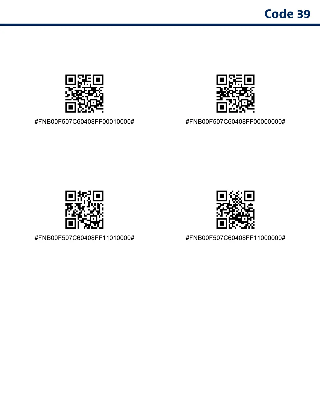 l'ensemble des caractères ASCII. Pour activer ou désactiver le code 39 Full ASCII, scannez un