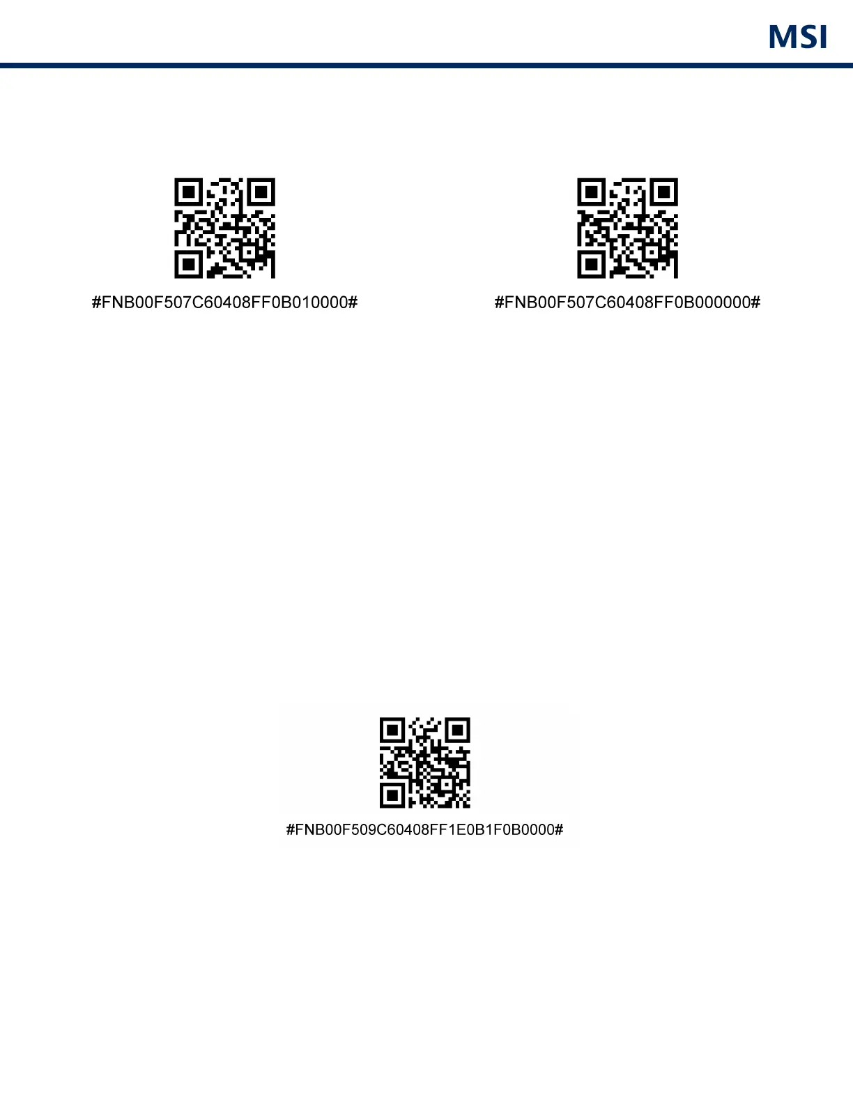 Pour activer ou désactiver le code MSI, scannez un des code-barres ci-dessous.