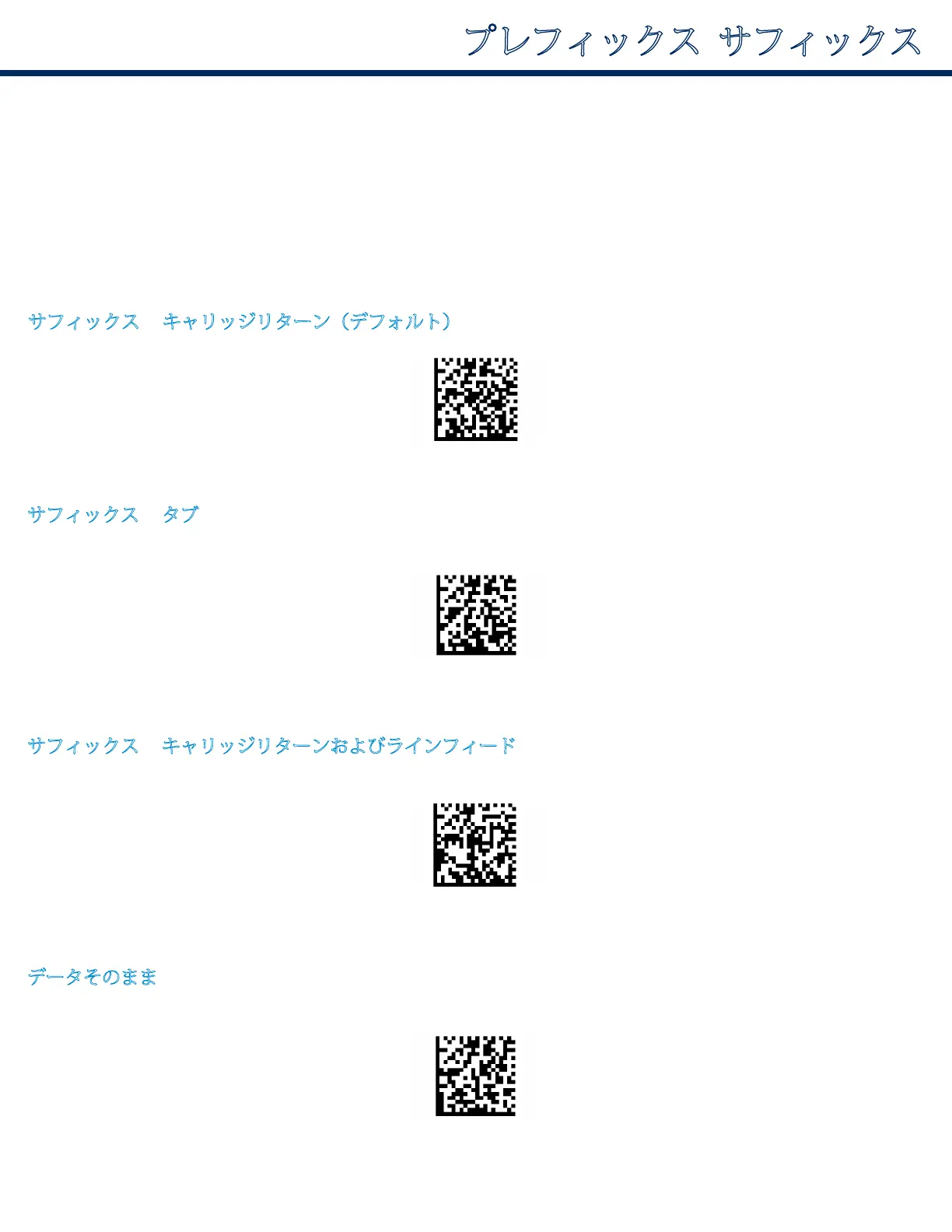 カスタムプフィックスおよサフィックスについては、support@socketmobile.comにおい