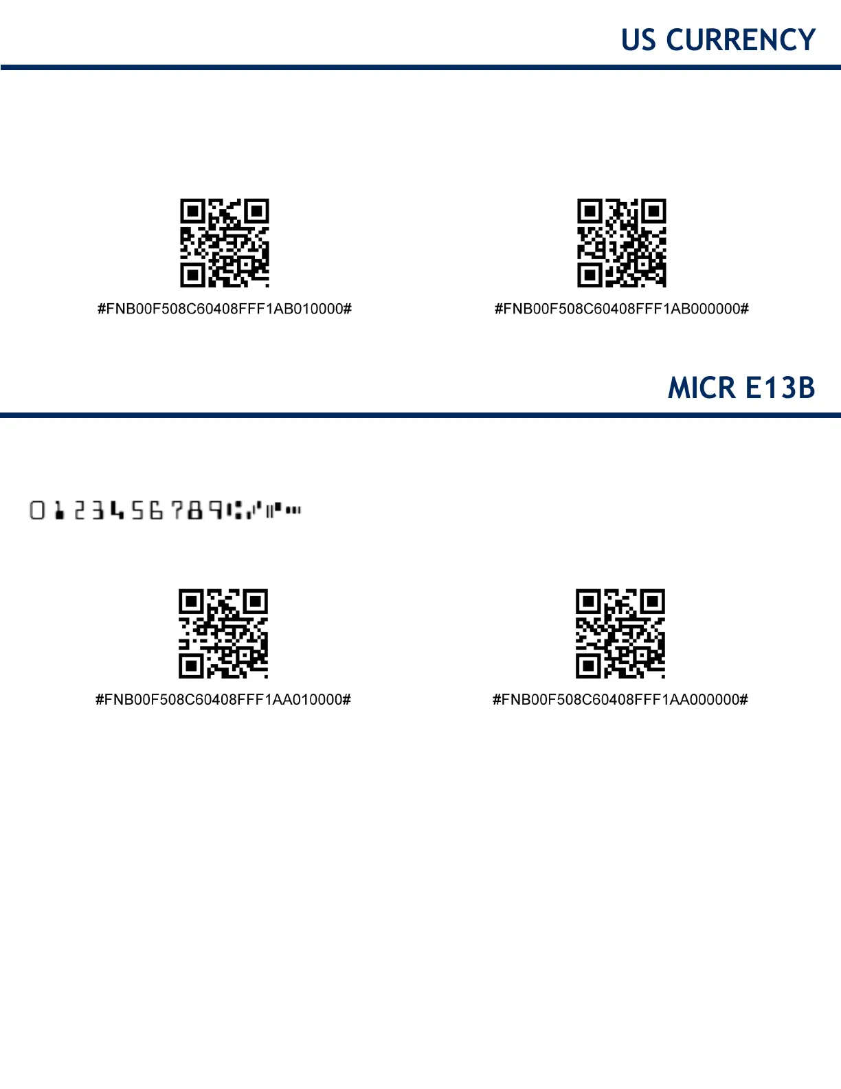 Scannen Sie einen der folgenden Barcodes, um die US-Währungsseriennummer zu aktivieren
