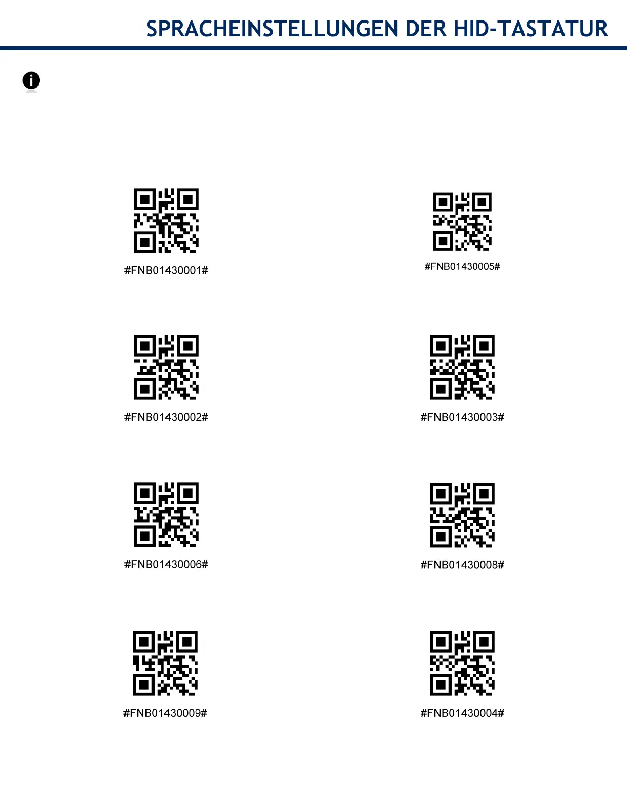 Diese Barcodes dienen zur Konfiguration des Scanners für verschiedene Sprachen unter Verwendung