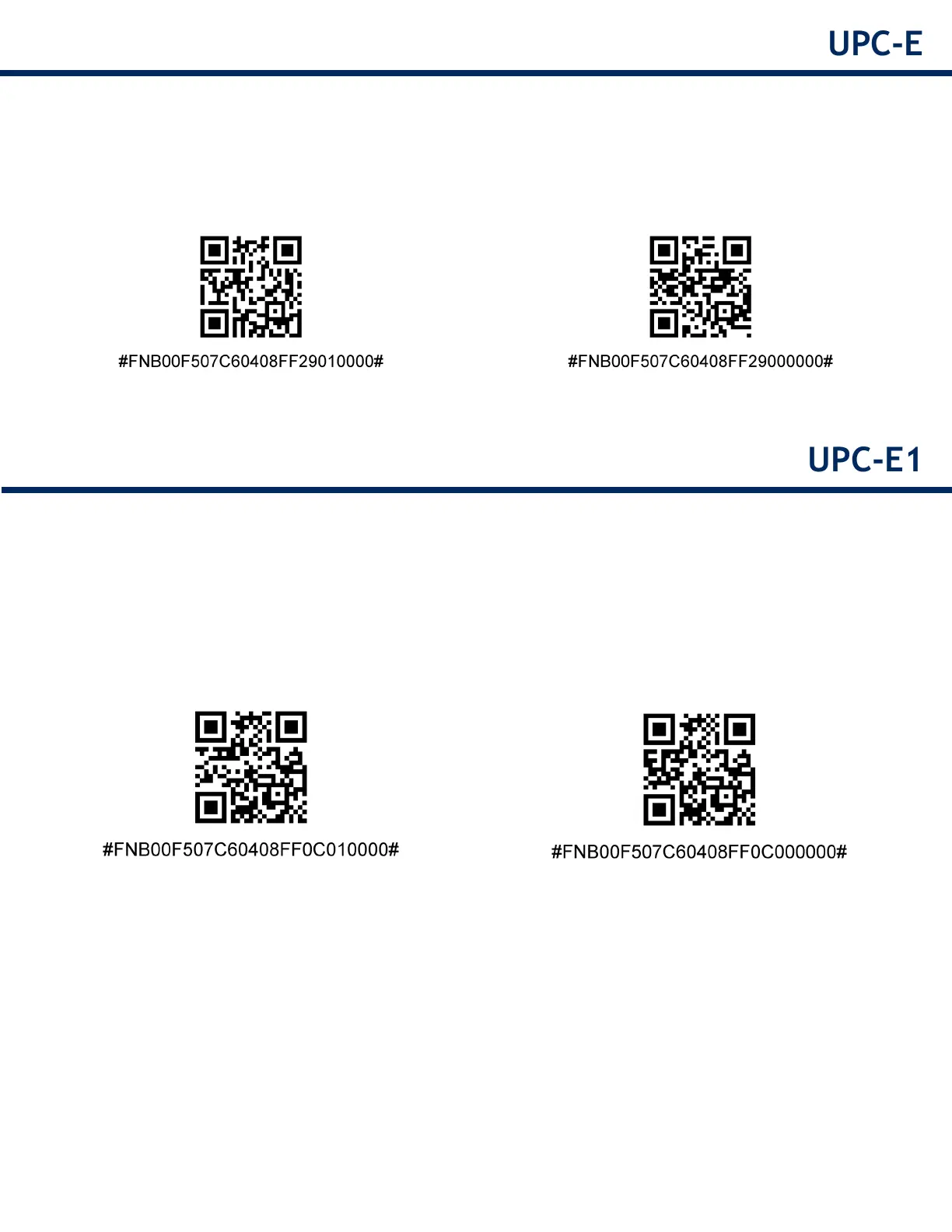 Scannen Sie den entsprechenden Barcode, um das Symbol mit oder ohne UPC-E-Prüfziffer zu
