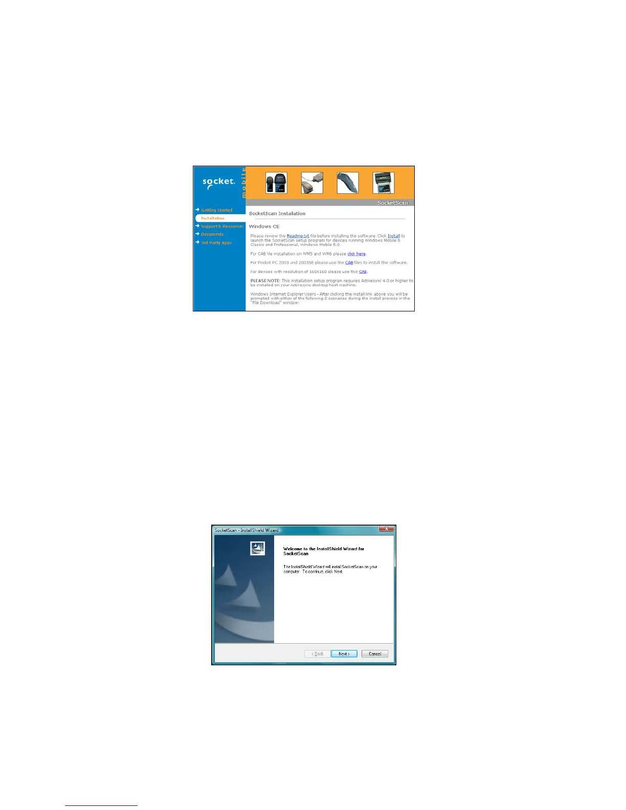 5. In the SocketScan installation page, in the Windows CE