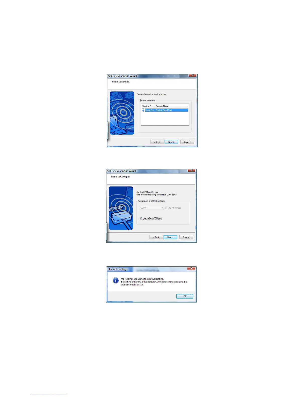 7. In the next screen, uncheck Use default COM port. Click