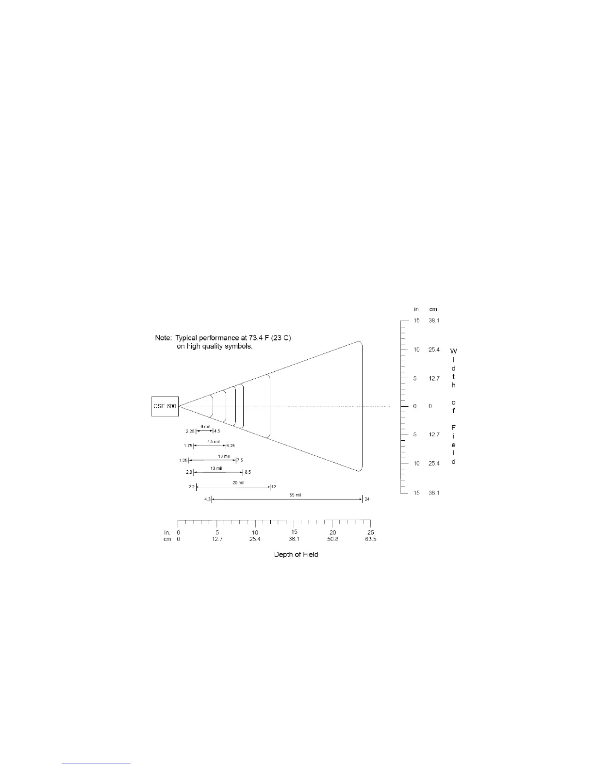 shown are the typical scanning distances (depths of field) for