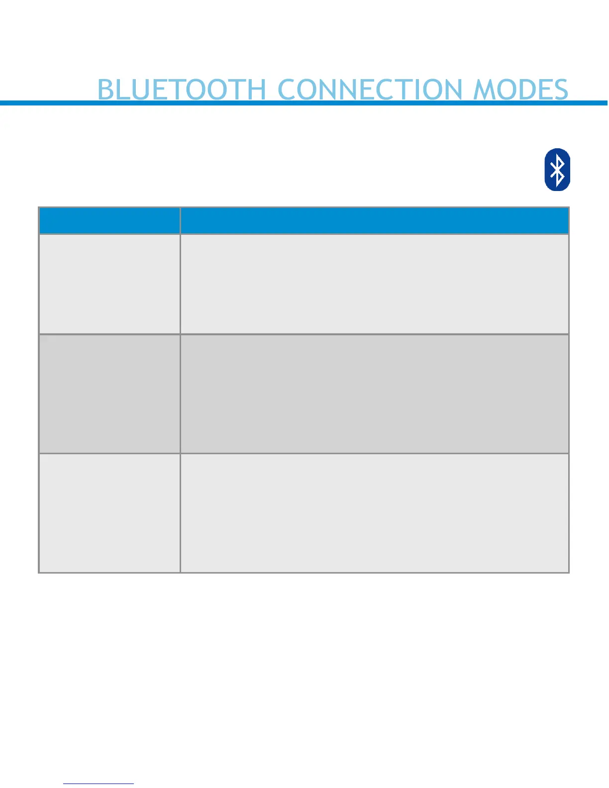 Bluetooth Mode Description
