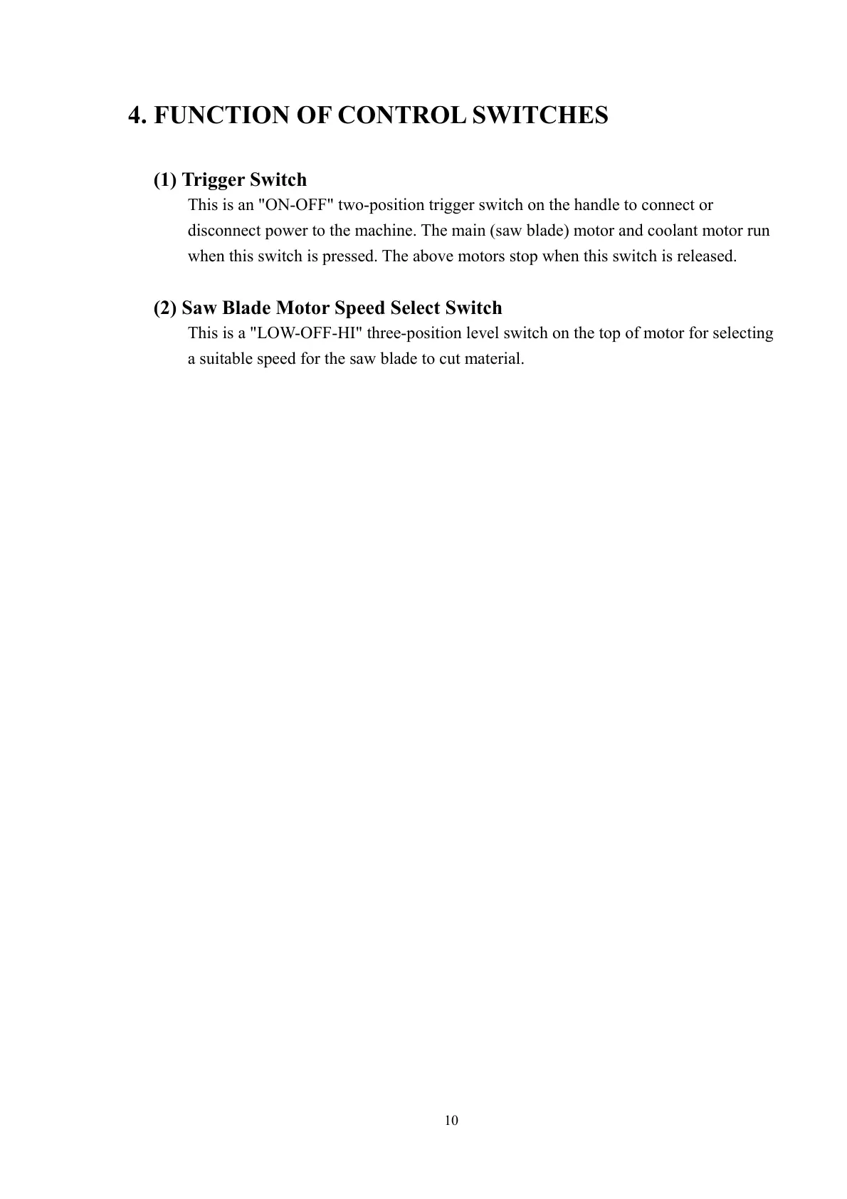 4. FUNCTION OF CONTROL SWITCHES