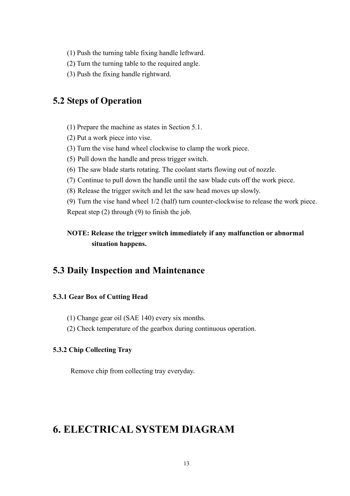 (8) Release the trigger switch and let the saw head moves up slowly.