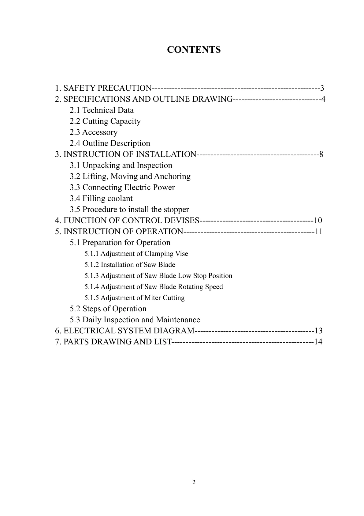 7. PARTS DRAWING AND LIST--------------------------------------------------14