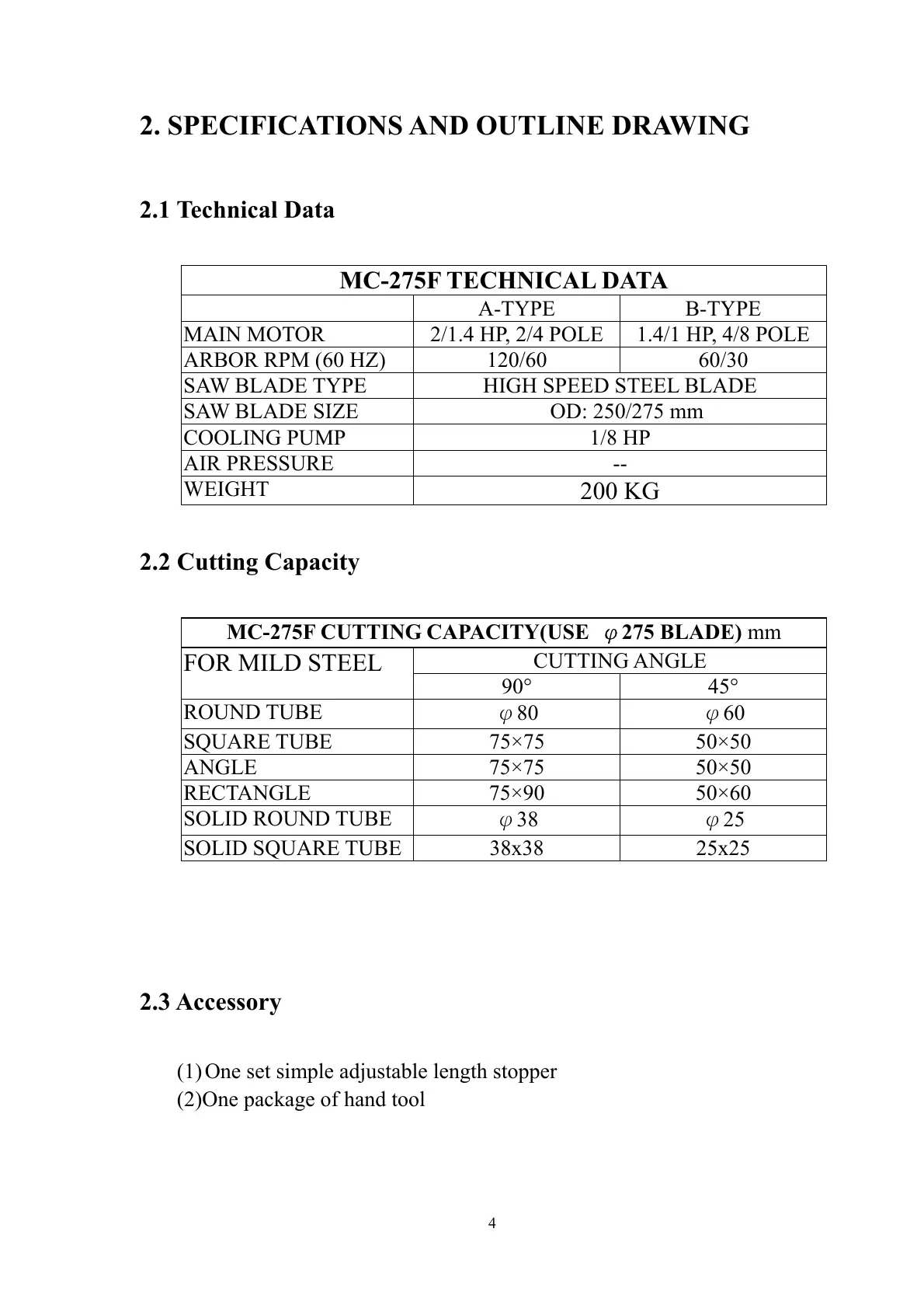 2. SPECIFICATIONS AND OUTLINE DRAWING