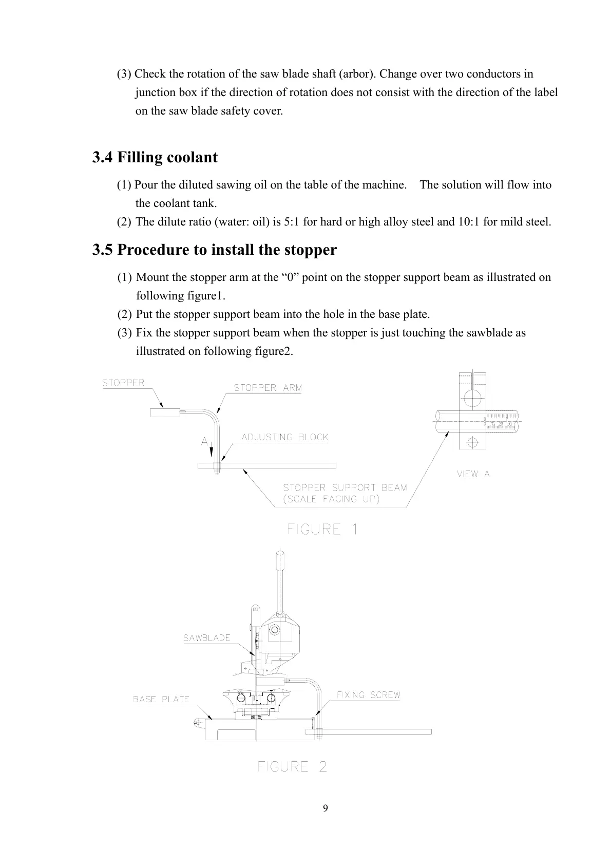 (3) Fix the stopper support beam when the stopper is just touching the sawblade as