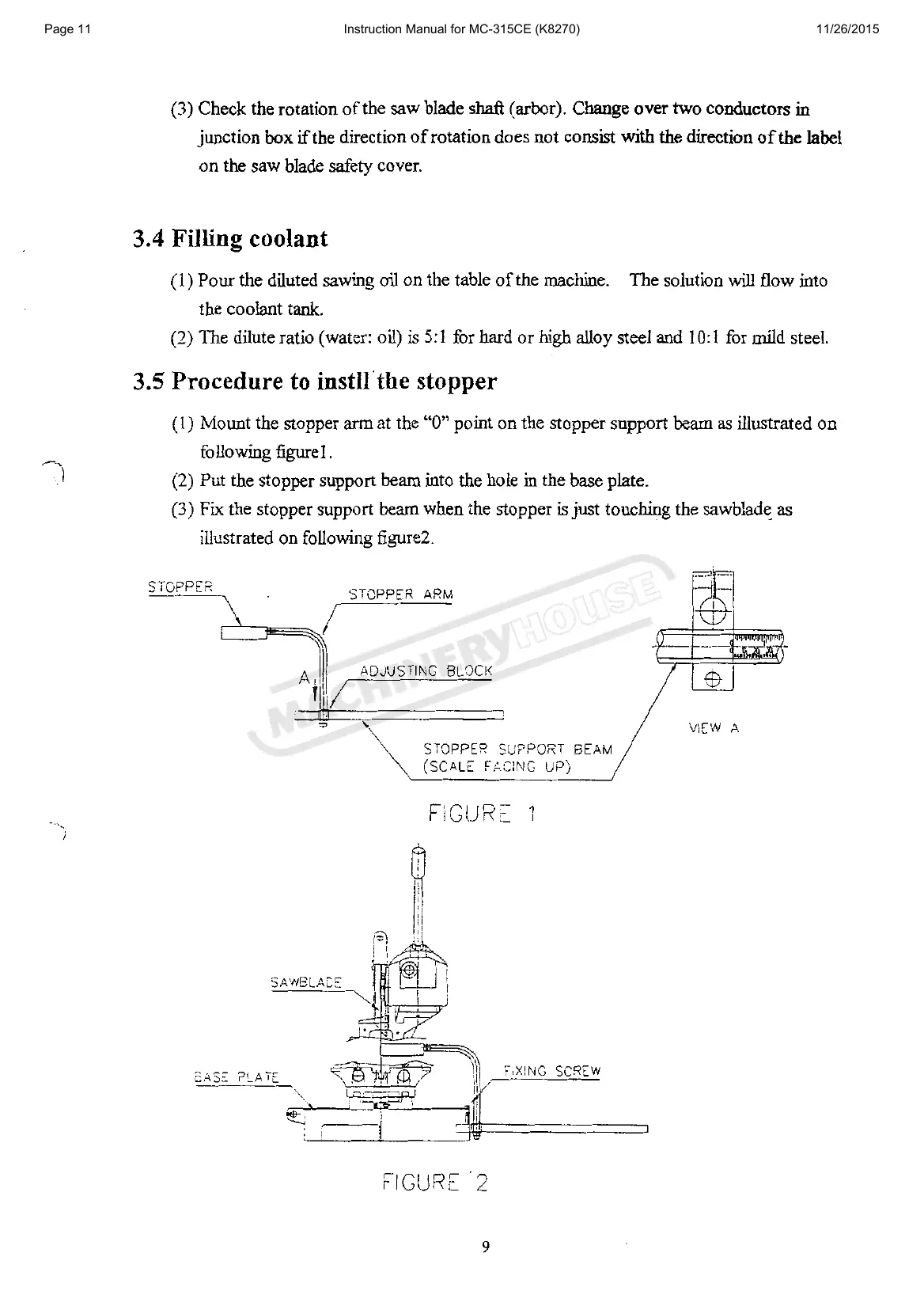SOCO MC-315F - 3.4 Filling coolant; 3.5 Procedure to instil the stopper