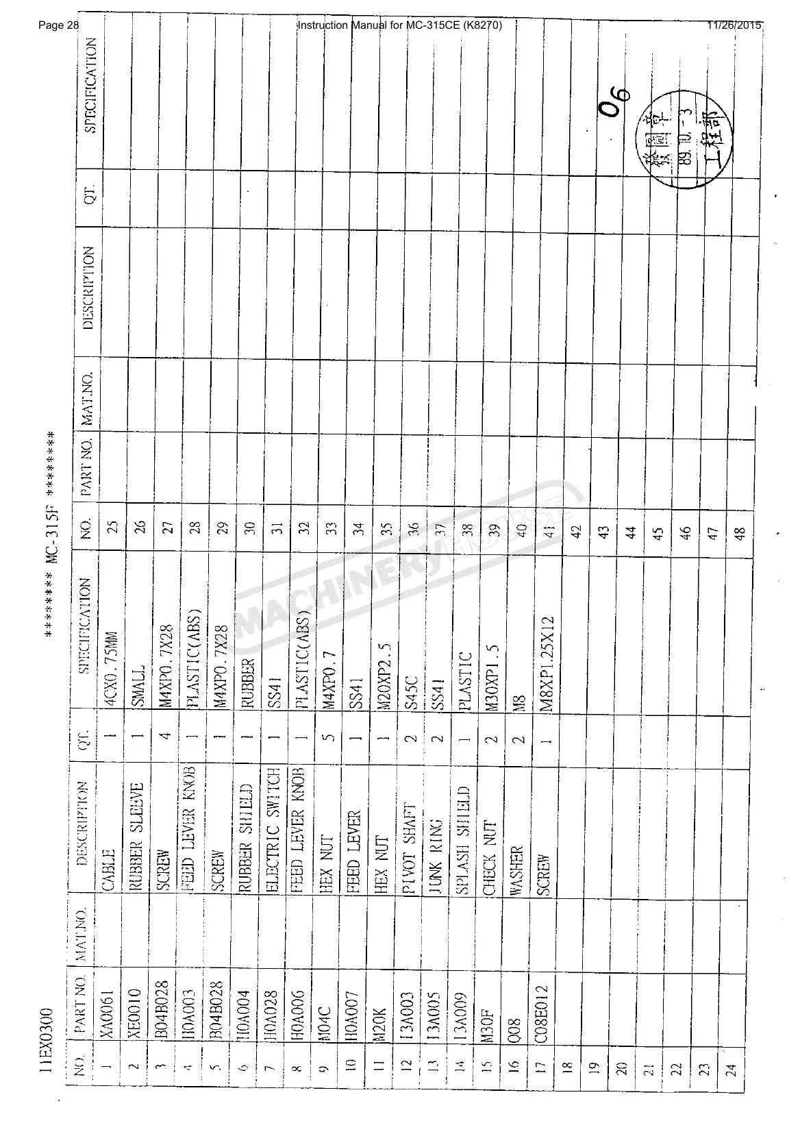 Instruction Manual for MC-315CE (K8270)