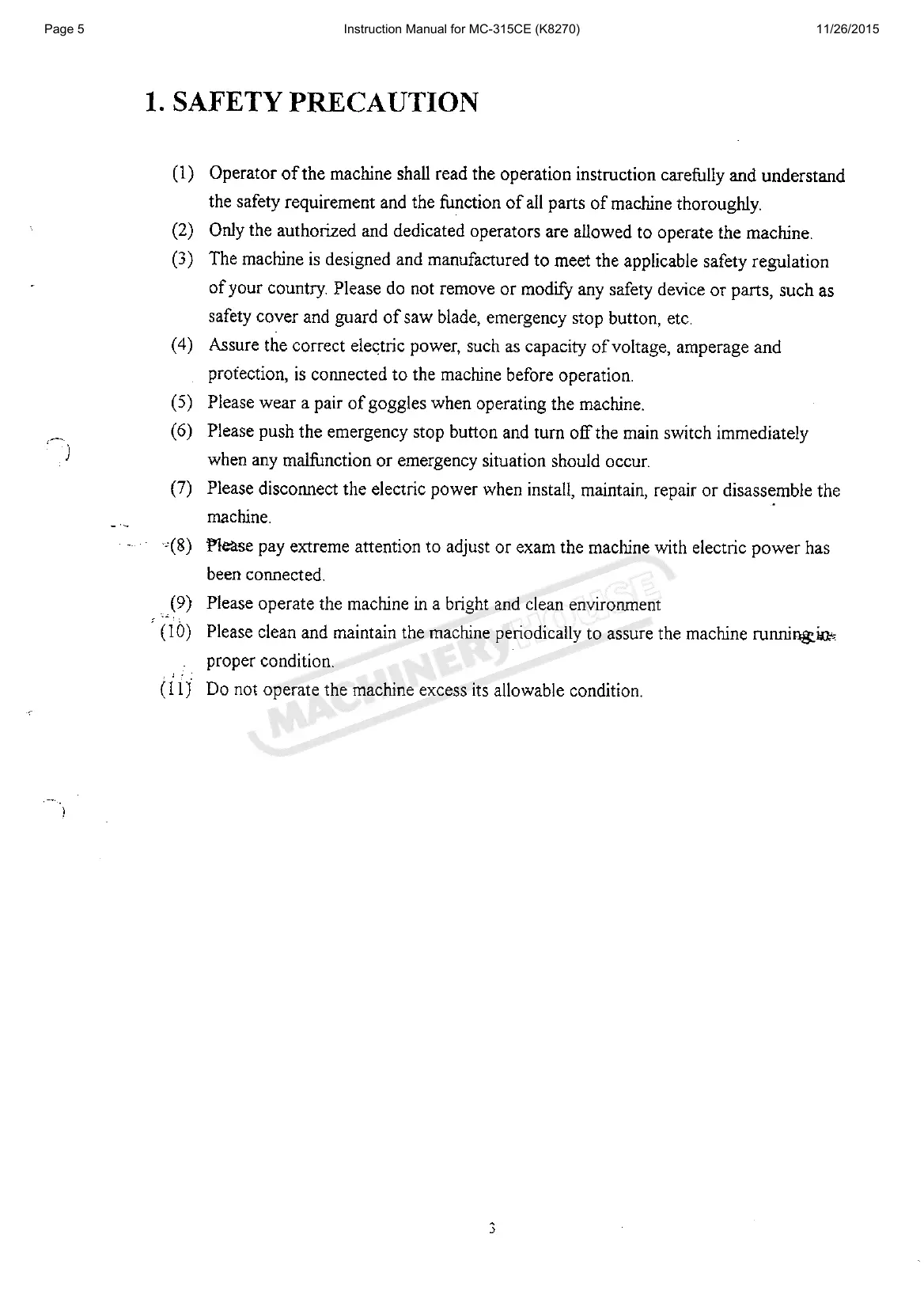 SOCO MC-315F - 1. SAFETY PRECAUTION