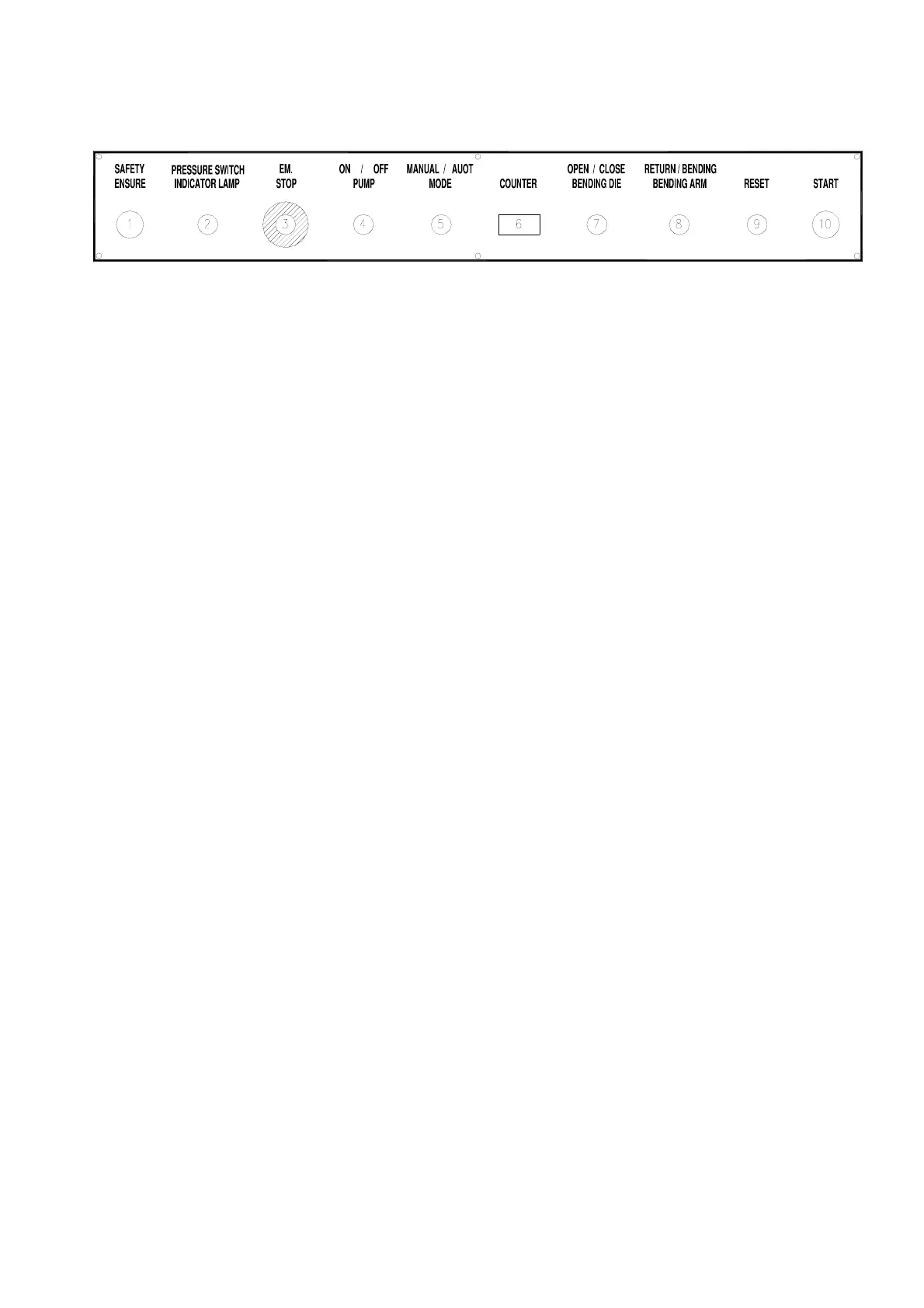 7. OPEN/CLOSE BENDING DIE selecting switch: