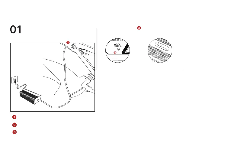 Insert the chargers AC power plug into the socket, and the battery starts charging when the charger indicator turns red.