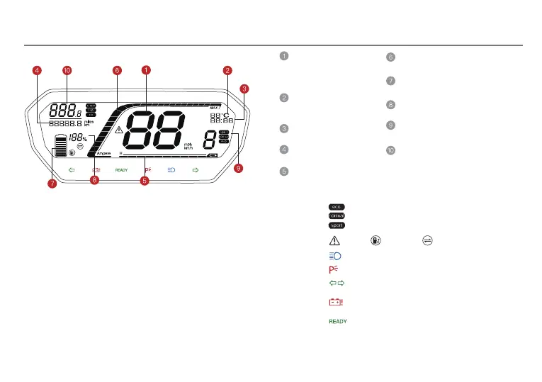 RANGE Remaining distance per charge. RPM Current riding distance.