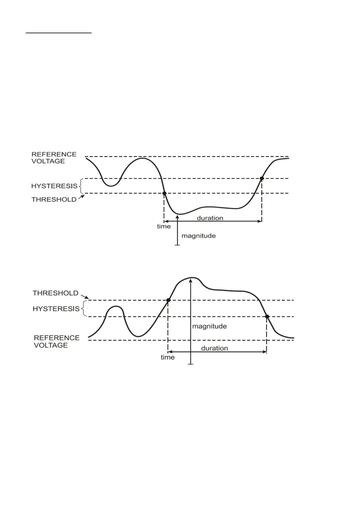 Spitzen sind der Schwellenwert und die Hysterese. Einbrüche und Spitzen werden in Dauer, Umfang