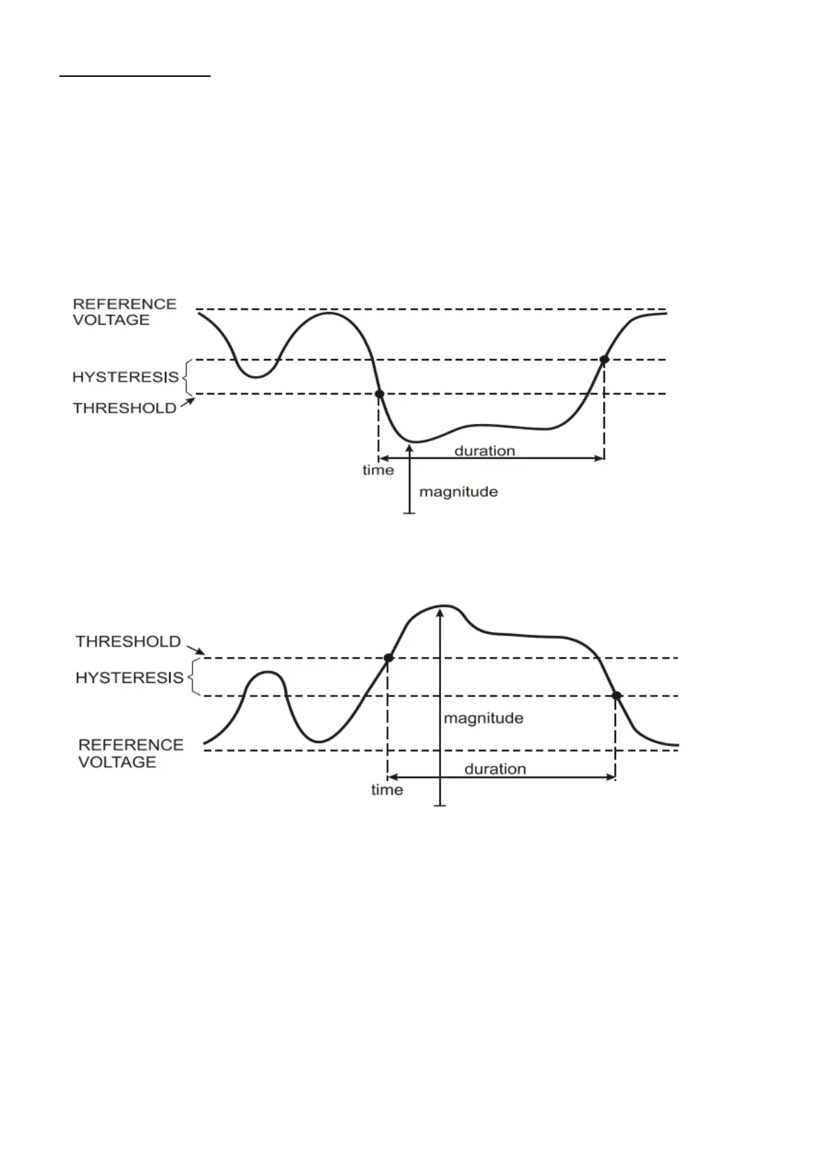 hysteresis. The trigger conditions for dips and swells are threshold and hysteresis. Dips and Swells are