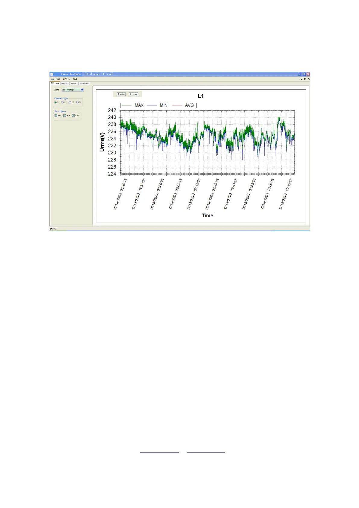 software. Click Y zoom button and then click data table, scroll up or down the mouse wheel to