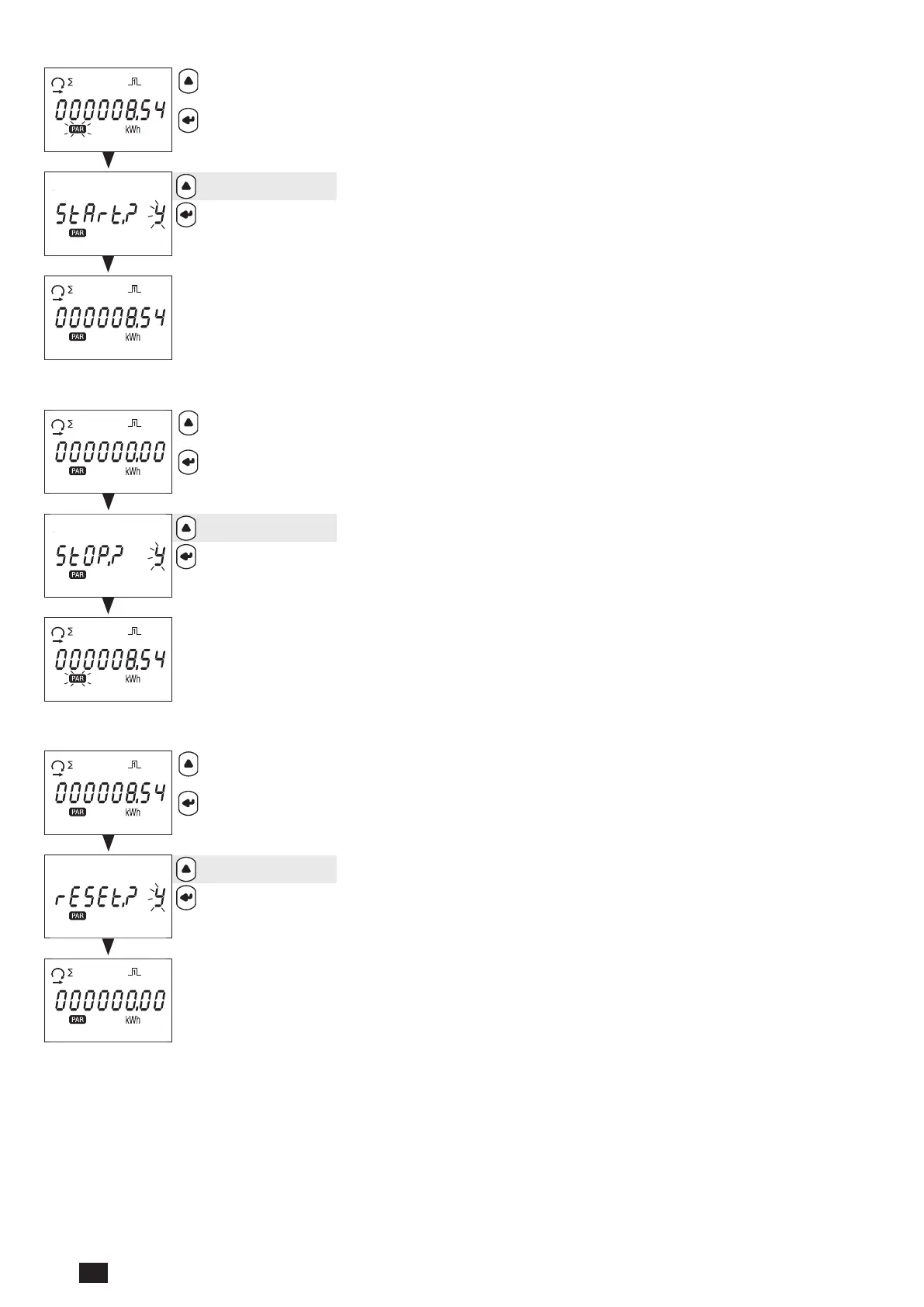 socomec COUNTIS E47 - Starting Partial Energy Meter; Stopping Partial Energy Meter; Resetting Partial Energy Meter