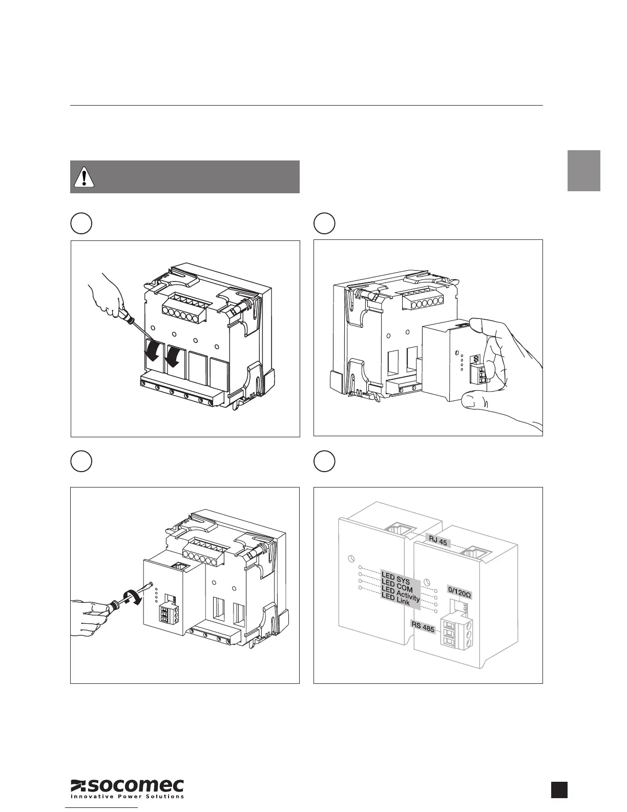 ThemoduleisttedontothebackoftheDIRIS A40/A41 in one of the 4 positions provided.