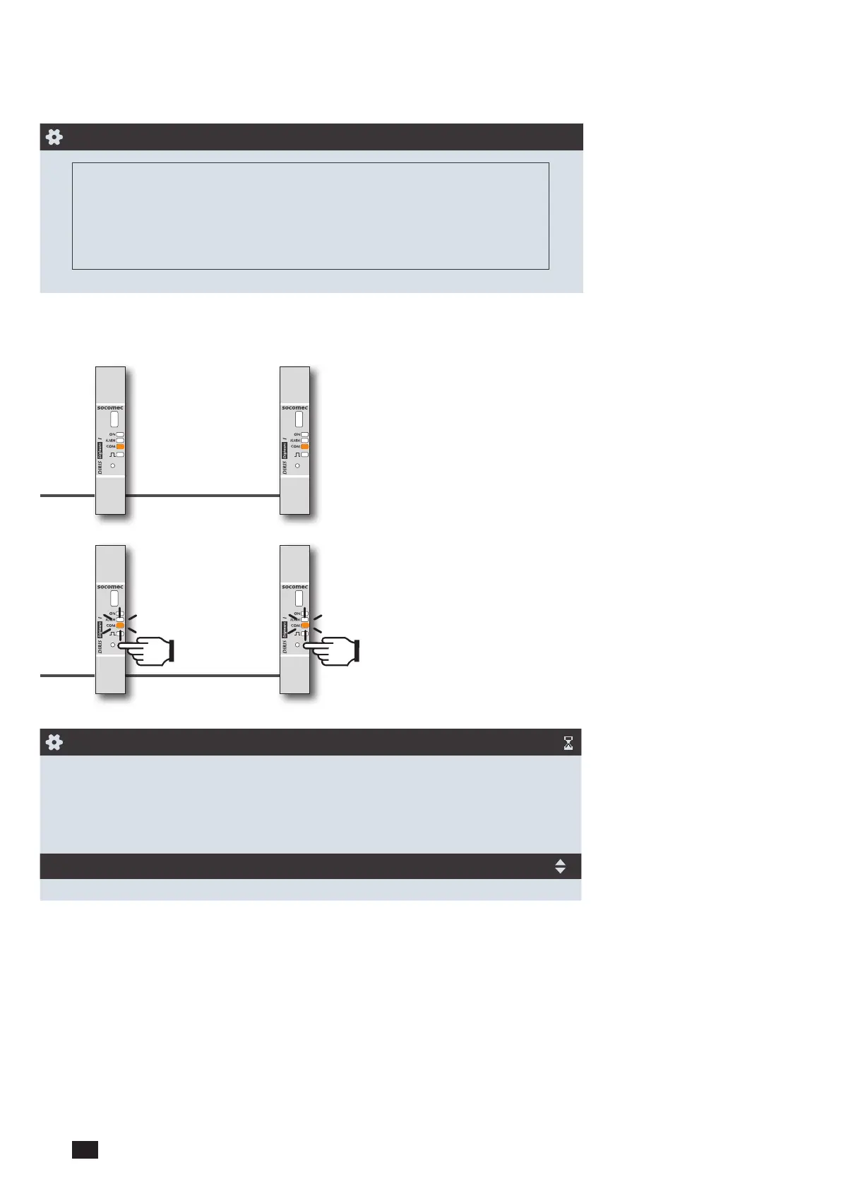 To manually resolve address conicts, locate the devices which have a lit and stable "COM" LED. Press and hold down