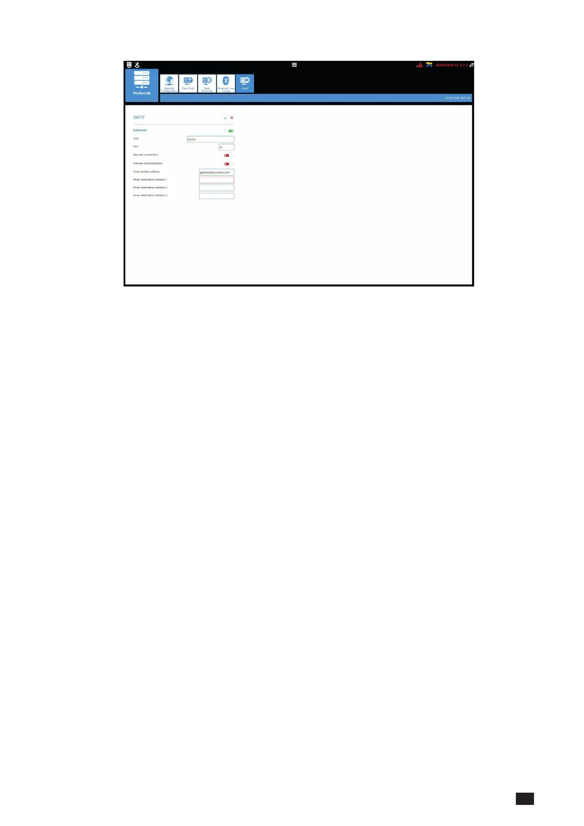 Activation: enable/disable the SMTP email export function