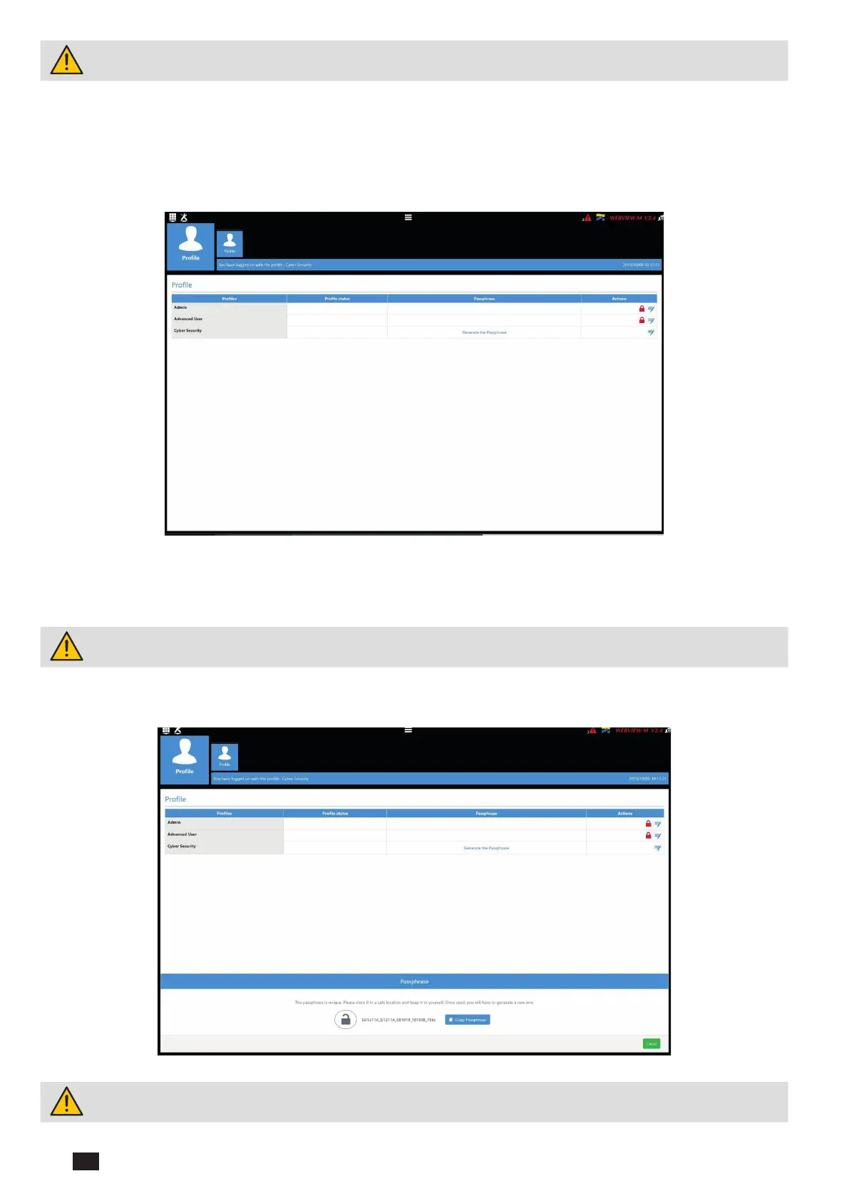 When connecting to the Admin, Advanced User or Cyber security proles for the rst time, it is mandatory to