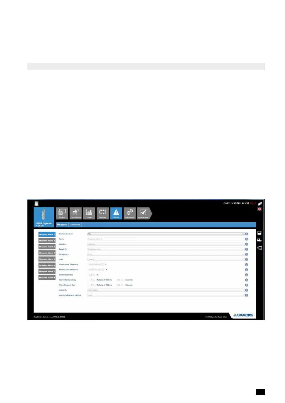 Up to 8 alarms for an electrical measurement can be congured per equipment and 4 for changes in status of a