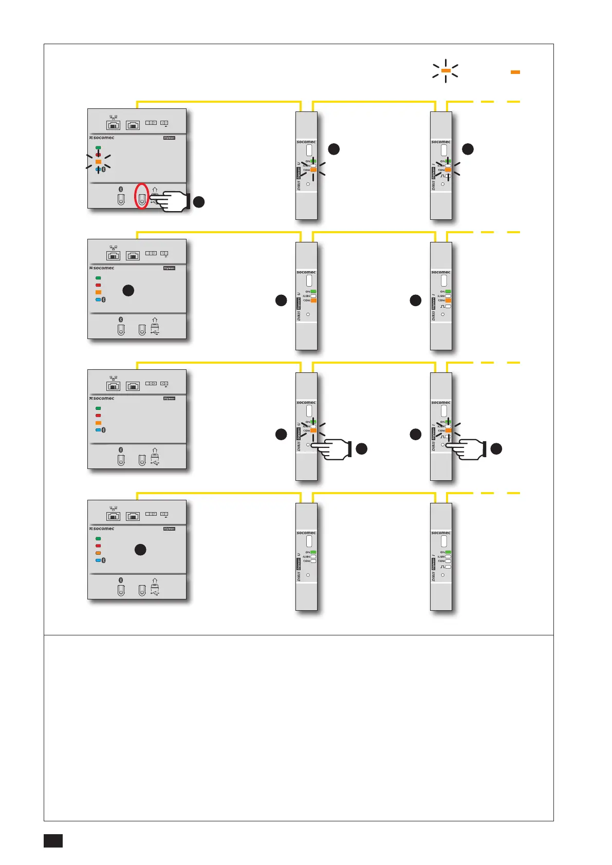 4a/5a. Press the front button on each slave device that has a xed COM LED, for at least 2 seconds.