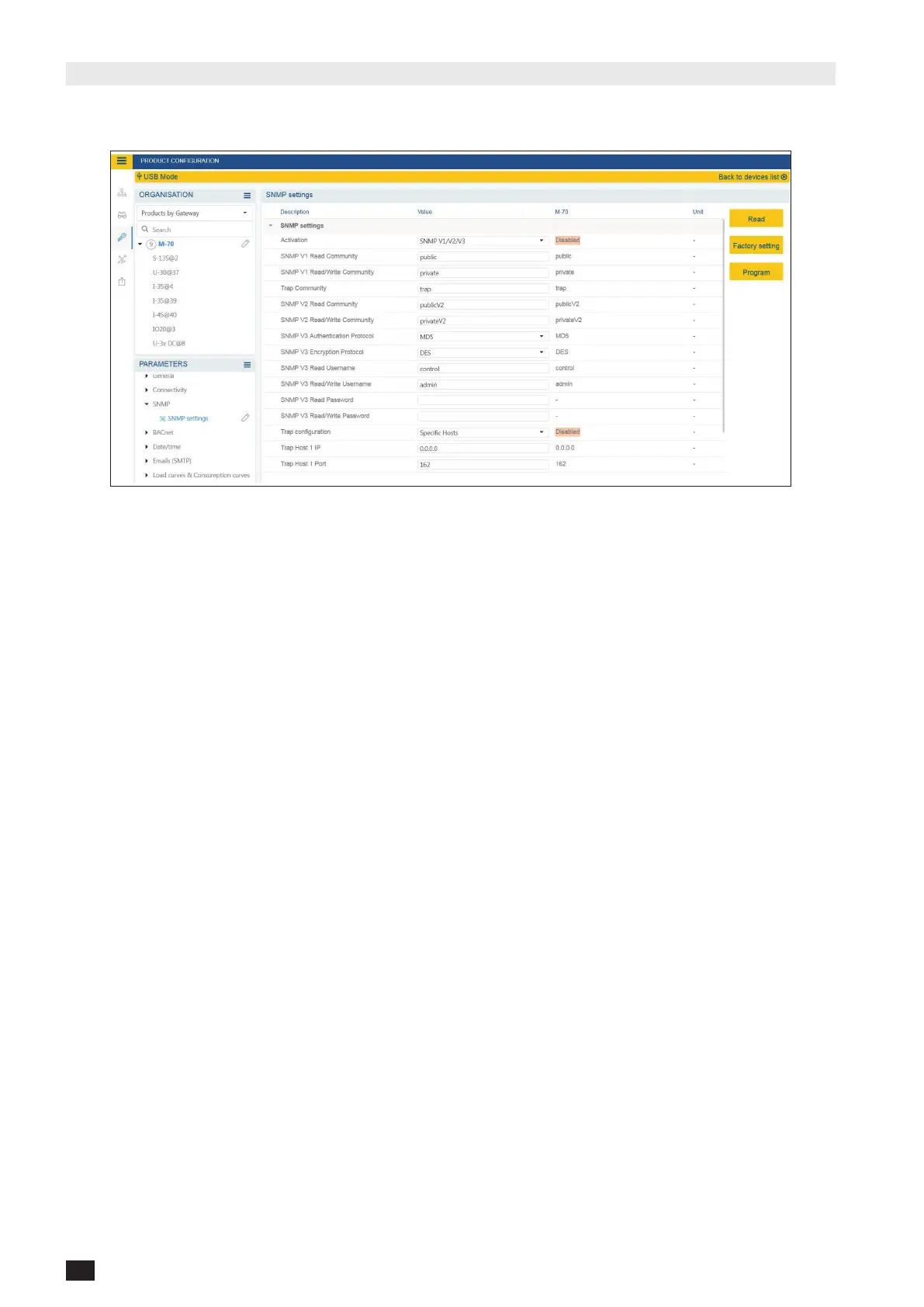 After logging in to EasyCong System on the DIRIS Digiware M-50 / M-70, you can nd the SNMP settings in the