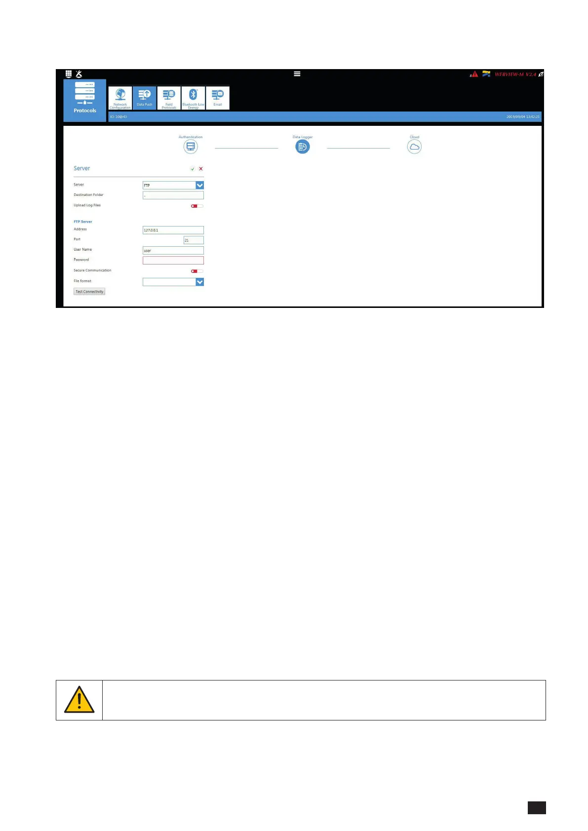 Server: activate the FTP server to enable the automatic export of data to a remote FTP server.
