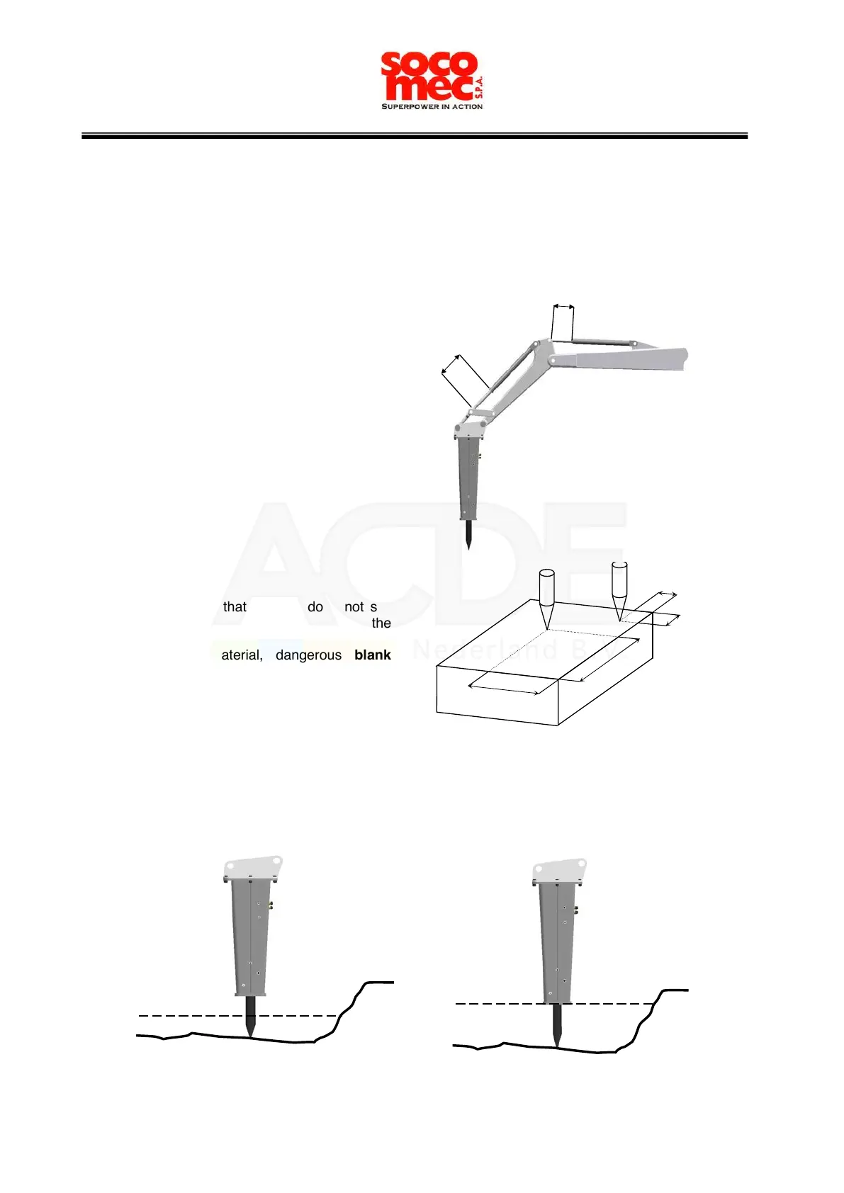 The hammer cannot work into the water if its level exceeds the tool stroke (see picture