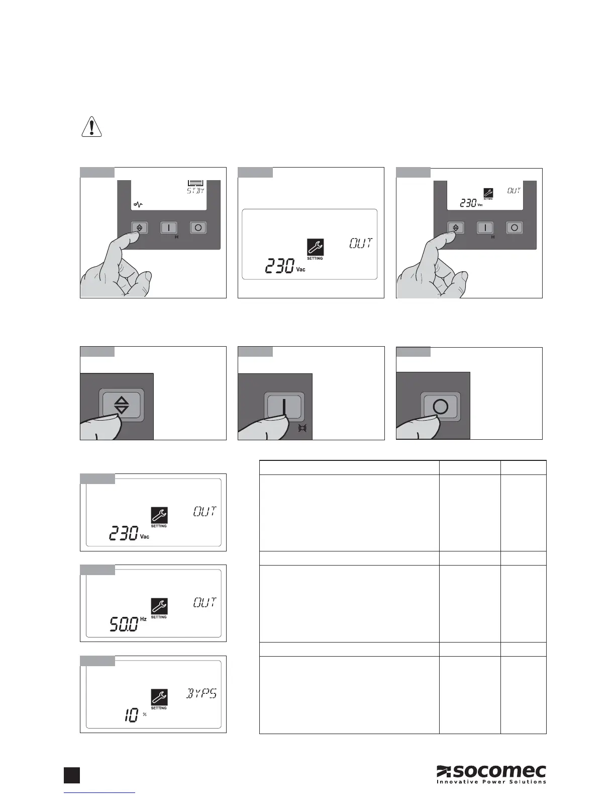 Wrong configuration in UPS SETTINGS could damage the load or the batteries.