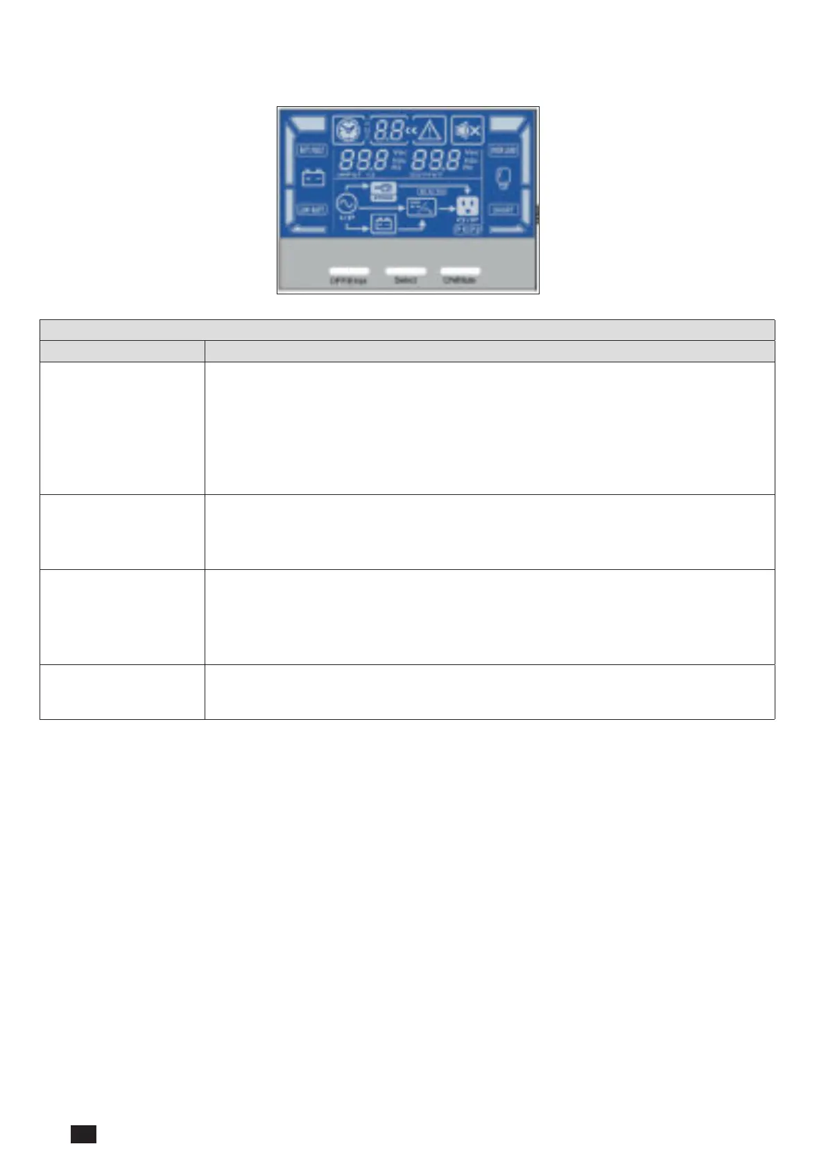 • Switch to bypass mode: When the main power is normal, press ON/Mute and Select