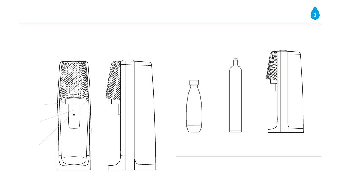 Actual shape of bottle may differ. A dishwasher-safe carbonating bottle may be included and is identified by its