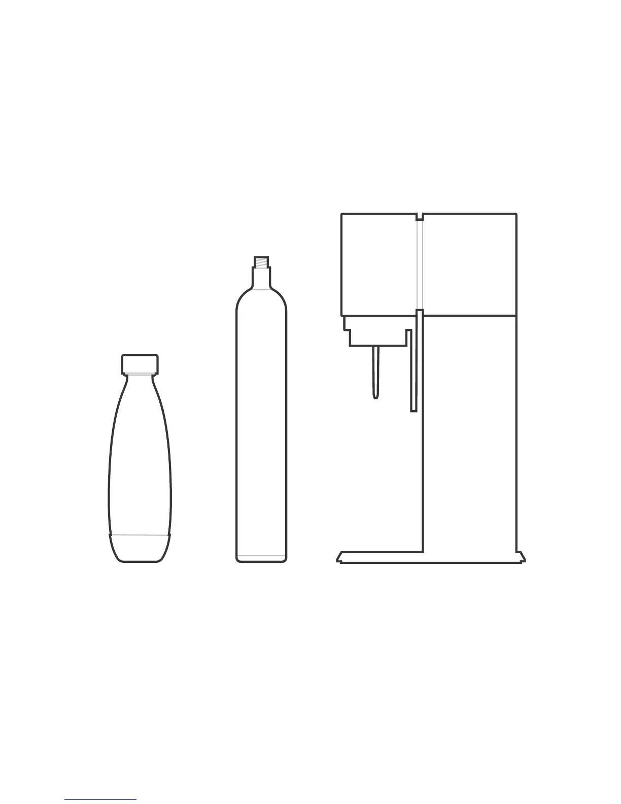 Emballagen indeholder SodaStream PLAY™sodavandsmaskine, starterpatron med kulsyre og en