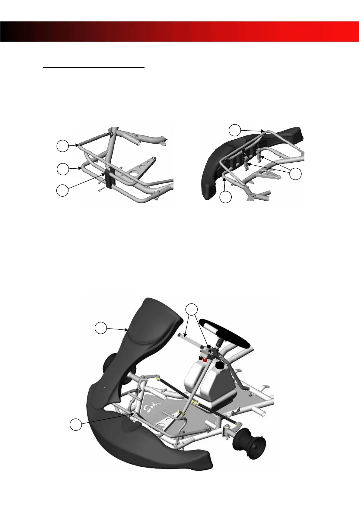¾ Assemble the spoiler fixation kit (1) between the spoiler upper support (2) and the